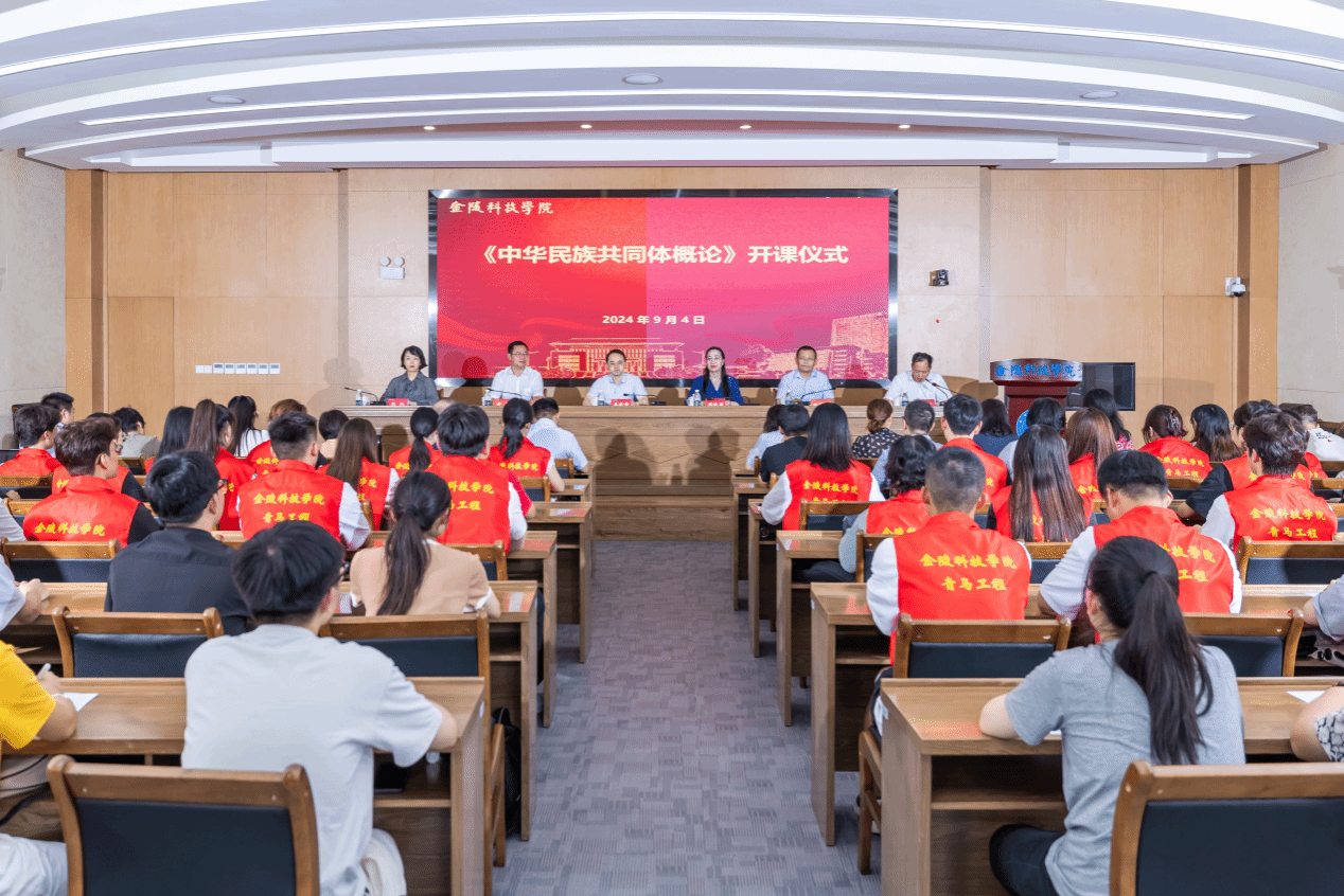 9月4日下午,我校在行政楼报告厅举行《中华民族共同体概论》开课仪式,校党委副书记单晓峰、副校长顾晓燕出席。开课仪式由马克思主义学院党总支部书记、副院长葛维东主持,党委统战部、教务处、团委等部门主要负责人,课程教学团队成员及选修该课程的学生参加开课仪式。单晓峰和顾晓燕共同为“铸牢中华民族共同体意识教育工作室”揭牌,马克思主义学院教授吴锦旗为选课学生讲授第一讲“中华民族共同体基础理论”。