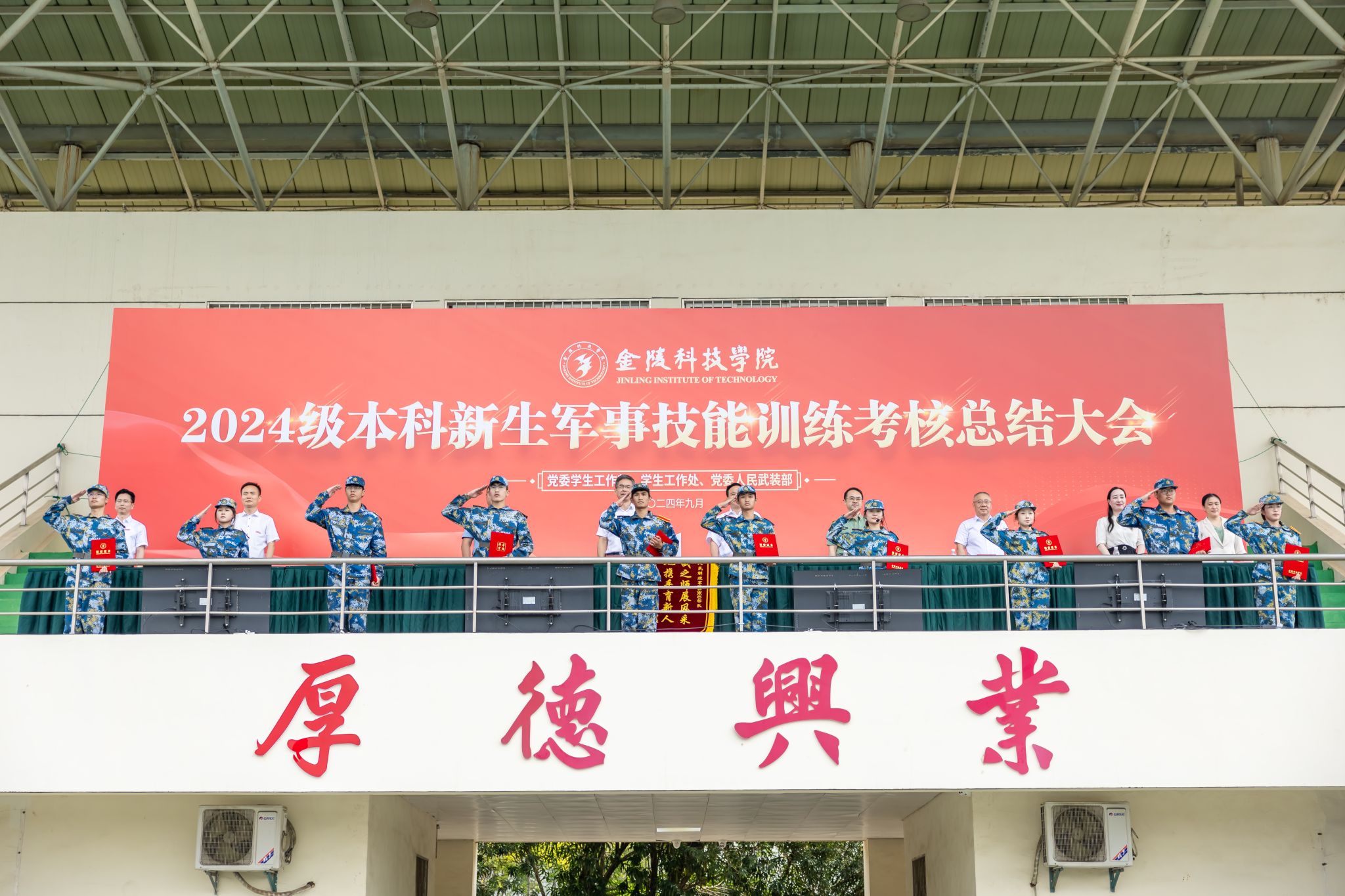 在中华人民共和国迎来75周年华诞之际,我校举行2024级本科新生军事技能训练考核总结大会,既是军训成果的展示,也是向祖国的献礼。通过14天军训生活的洗礼,同学们厚植了爱国情怀,增强了体质,磨练了意志,塑造了奋发向上、坚韧顽强的精神品格。相信在未来的日子里,2024级金科学子将继续发扬军训期间的优良作风和顽强拼搏的精神,在新起点上用奋斗之行书写人生答卷,在新征程上以青春之我践行强国誓言。