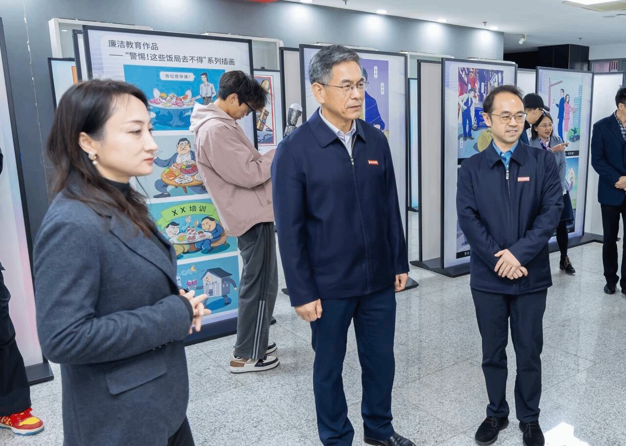 活动最后,与会领导嘉宾与师生代表共同参观了“周恩来家风图片展”,通过一张张珍贵的历史照片、一段段翔实的文字记载,直观感受周恩来同志的高洁品格。位于南京动漫科普馆“星火”馆的“廉洁文化作品展”也同步开放,展区内,师生创作的动态插画、3D打印文创产品、AI动态展示作品、廉洁主题微电影及IP设计等共计76件作品集中亮相,通过艺术形式生动地传播廉洁文化。其中,两组静态插画曾获推荐至中央纪委。