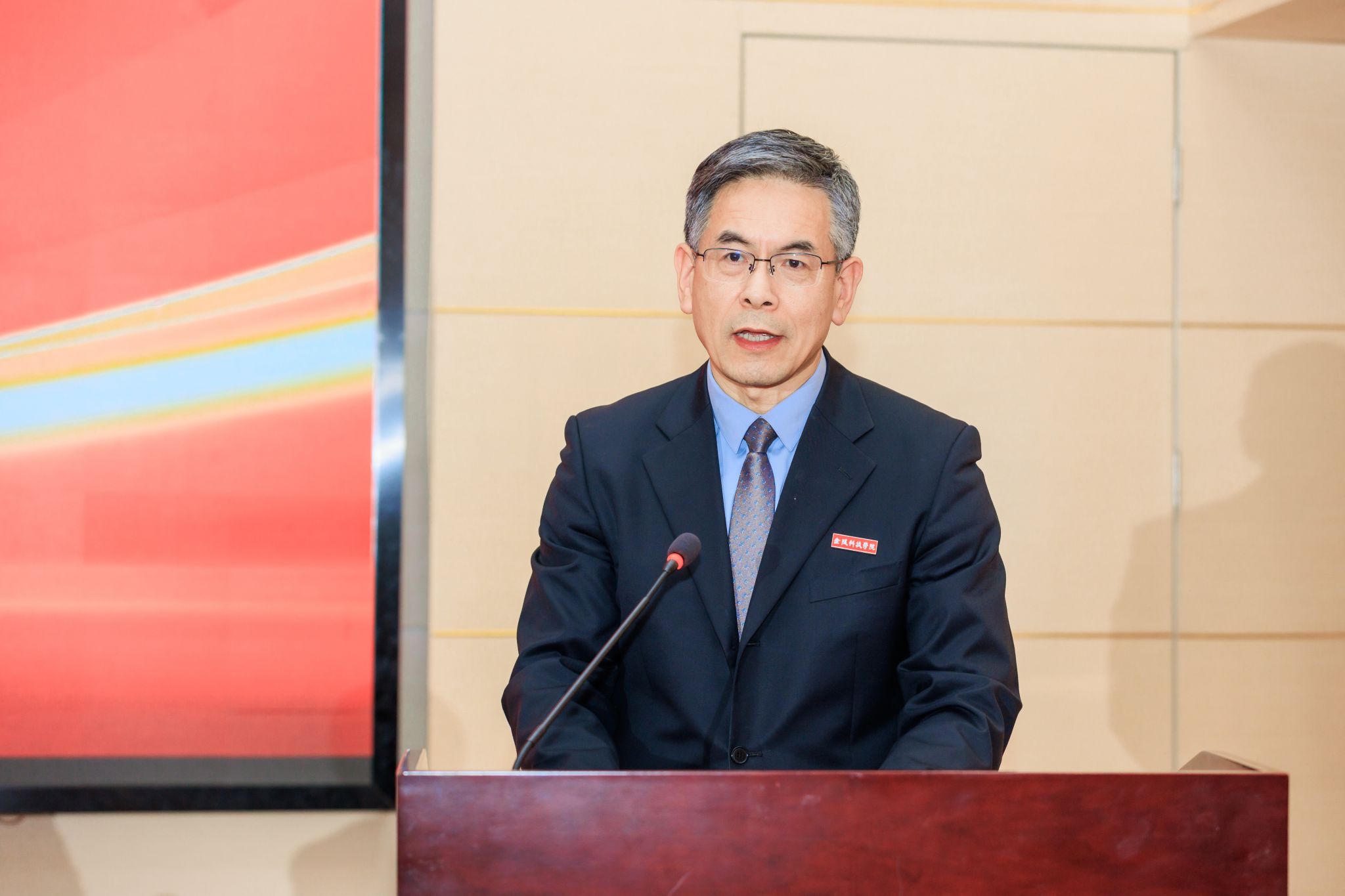 刘志远代表学校向在百忙之中拨冗莅临现场的企业班主任致以最热烈的欢迎和最诚挚的敬意。他介绍了学校的历史沿革和发展历程,并指出,近年来学校快速发展,从升本、升硕,再到获批江苏省一流应用型本科高校和博士学位授予立项建设单位,实现了办学层次的重大跨越,这些显著成绩的取得离不开社会各界的鼎力支持。刘志远表达了对企业班主任、二级学院和金科学子的期待与嘱托:一是感谢企业班主任以爱生情怀助力金科,期待企业班主任用行业智慧点亮学子前程。相信企业班主任的加入定会让学校应用型人才培养的土壤更加肥沃,江苏省一流应用型本科高校建设的步伐将更加铿锵有力;二是希望二级学院务必以精细服务搭建协同平台,以严格管理保障育人实效。各二级学院既要做好企业班主任的“服务员”,也要成为“管理员”,通过企业班主任的深度参与,实现人才培养“思政教育-产业实践-就业服务”闭环;三是鼓励同学们珍惜机遇主动求教,实现成长路上的“弯道超车”。要将企业班主任传授的经验智慧内化为自己的认知和能力,积极争取实践机会,在实践中检验真知、锻炼本领,努力成长成才。