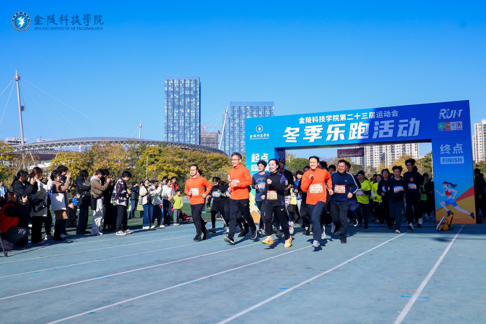 11月29日,我校在江宁校区北区田径场成功举办第二十三届运动会“冬季乐跑”活动。江苏省教育厅体卫艺处处长李海宁、南京市教育局体卫艺处处长叶勇、江苏省学校体育教学指导委员会常务副秘书长王凯;校党委书记刘志远,校长季赛,校党委副书记单晓峰,副校长张燕、高永祥、王延光、顾晓燕,纪委书记王靖华等出席开幕式。