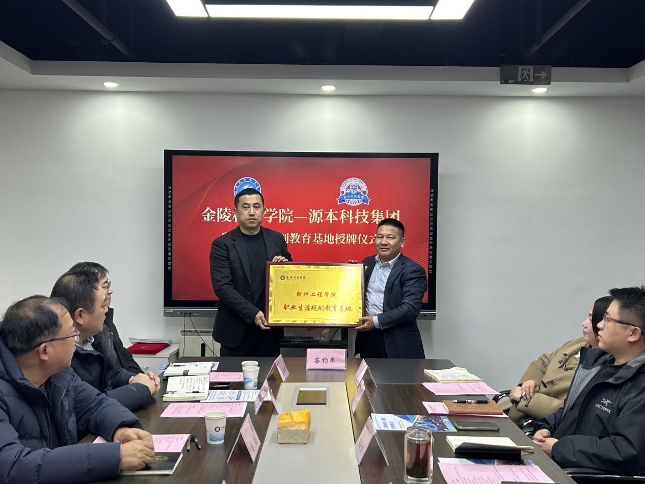 调研团队首先抵达位于南师大玄武科技园的江苏源本科技总部,参观了企业文化墙、校企合作展示区等场所。在交流会上,双方负责人围绕人才供需对接、校企深度合作模式等议题展开深入交流,并举行了“职业生涯规划教育基地”“就业和社会实践基地”授牌仪式。