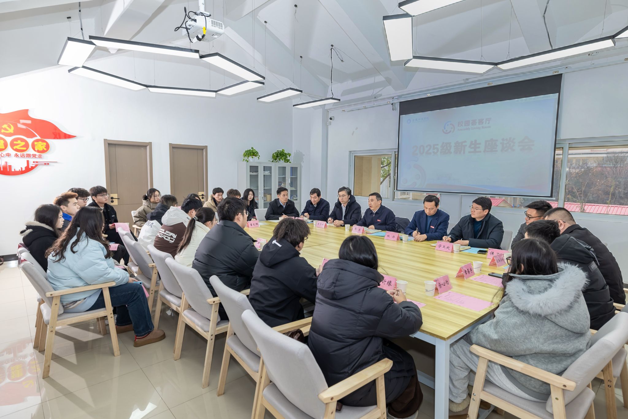 1月6日,我校在江宁校区南区01栋“一站式”学生社区召开2025级新生代表座谈会,校长季赛与校长办公室、教务处、学生工作处、研究生处、保卫处、后勤管理处、后勤实业公司等部门负责人一同参加。