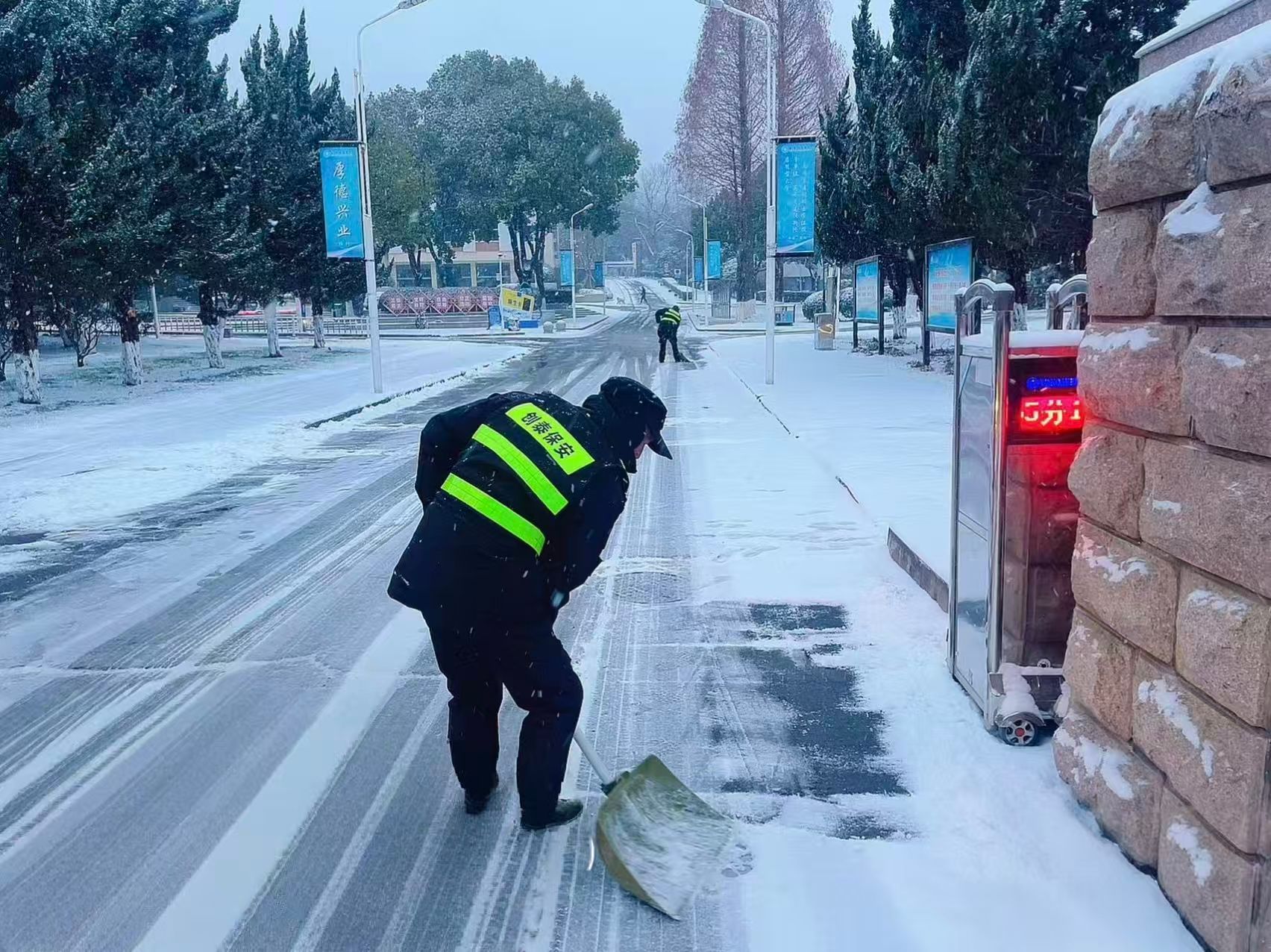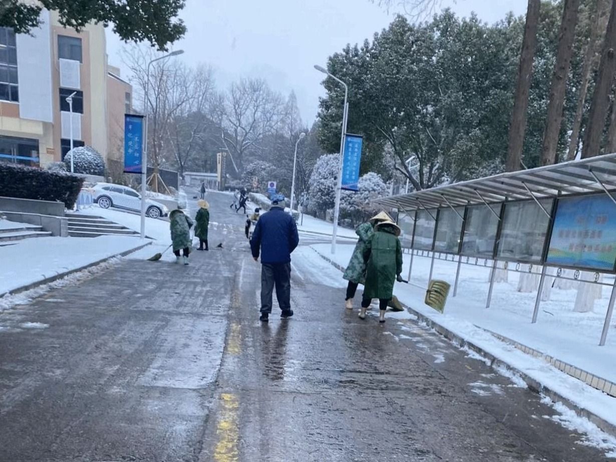 降雪前,学校后勤部门未“雪”绸缪,制定扫雪工作方案,落实应急队伍住校值守、扫雪物资足额储备等工作细节,全力筑牢“雪停路净”的保障防线。