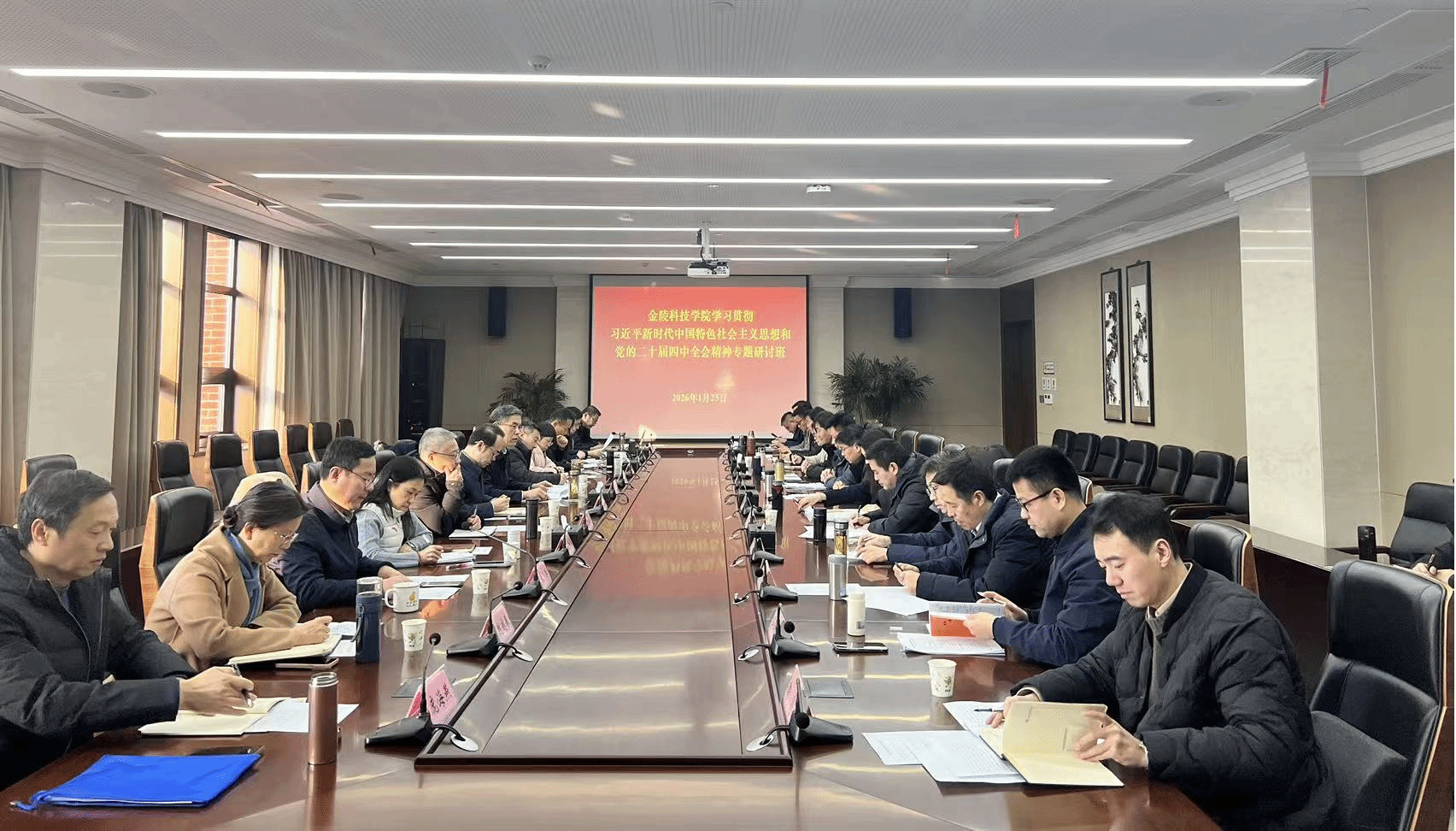 1月23日至25日,我校在溧水区委党校举办学习贯彻习近平新时代中国特色社会主义思想和党的二十届四中全会精神专题研讨班。全体校领导、处级干部及跟岗锻炼博士教师参加培训。