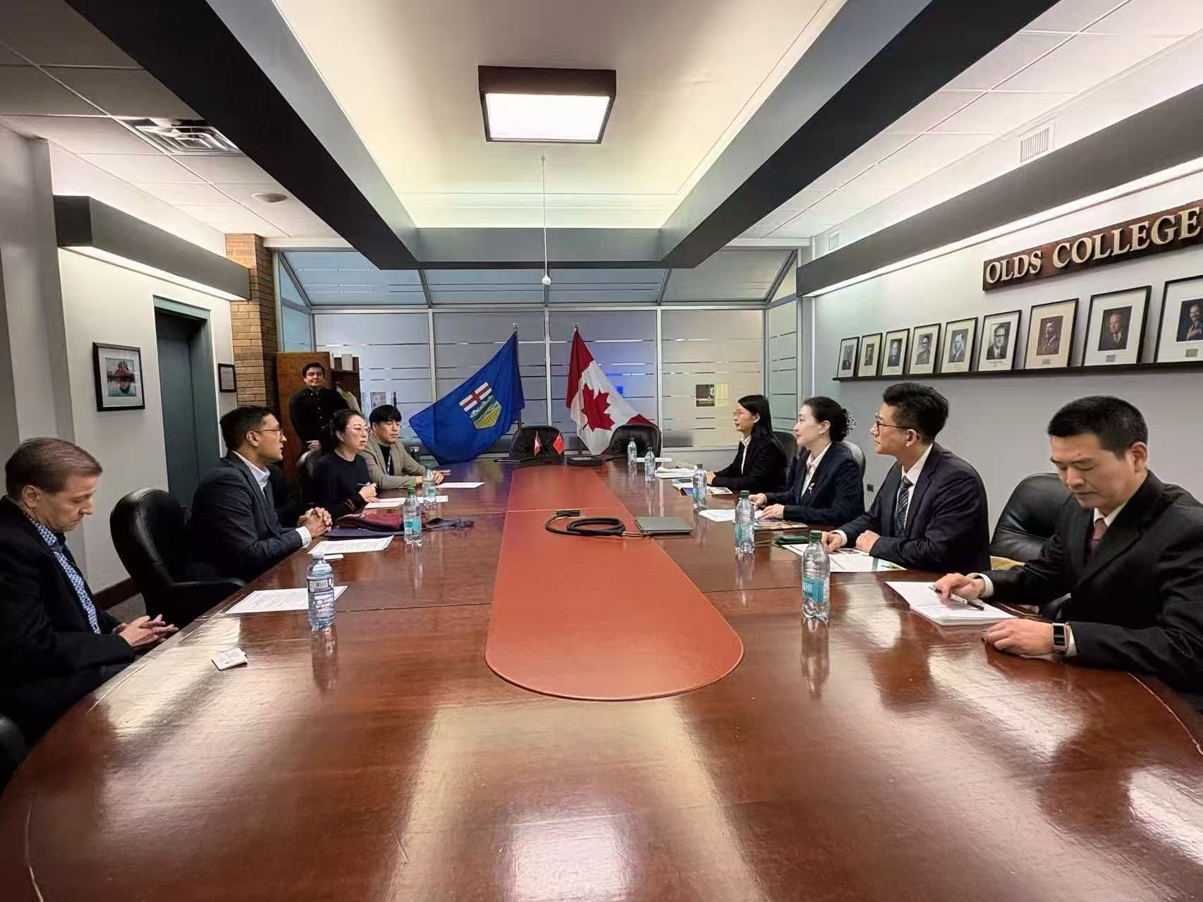 代表团与奥兹学院副校长Peter Mal、Dalin Bullock会谈,洽谈了联合科研项目、师生交流互访以及“2+2”中外合作办学项目合作的可能性。双方在2025年9月奥兹学院来访和此次出访会谈的基础上,签署了合作备忘录,构建了高效、务实的常态化合作机制,为我校与加拿大高校在未来开展更深层次、更广泛领域的合作开辟了广阔前景。