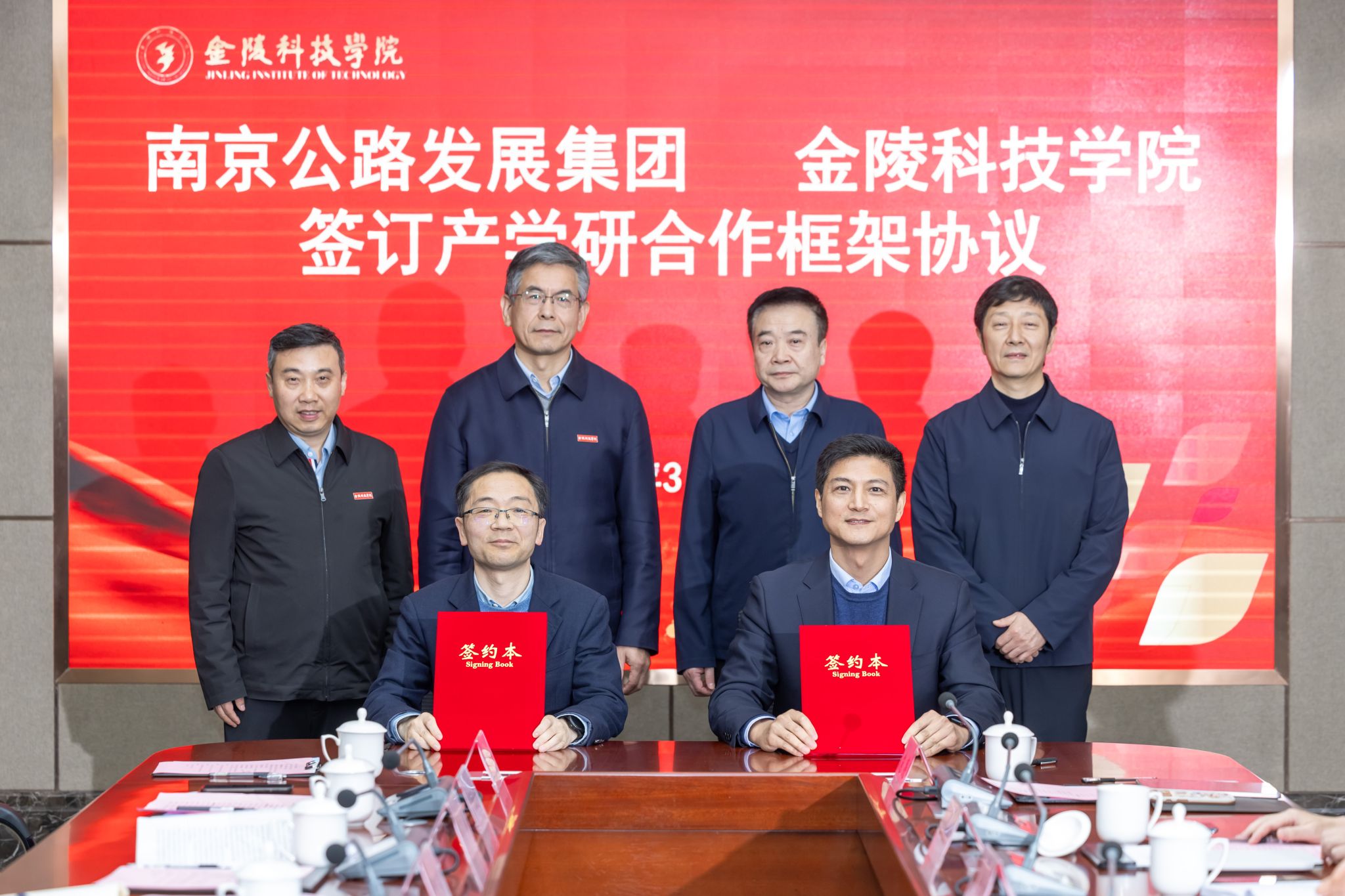 在奚晖、陈亚林、刘志远、季赛的见证下,南京市交通集团副总经理王学斌与张燕代表双方签订了《南京市交通集团—金陵科技学院战略合作框架协议》;南京公路发展集团总经理成金与网络与通信工程学院院长王池社代表双方签订了《产学研合作框架协议》。陈亚林和季赛共同为“数智低碳交通江苏省高校重点实验室”揭牌。