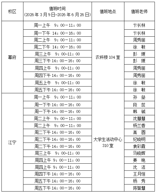 3.心理咨询值班安排(见下表)