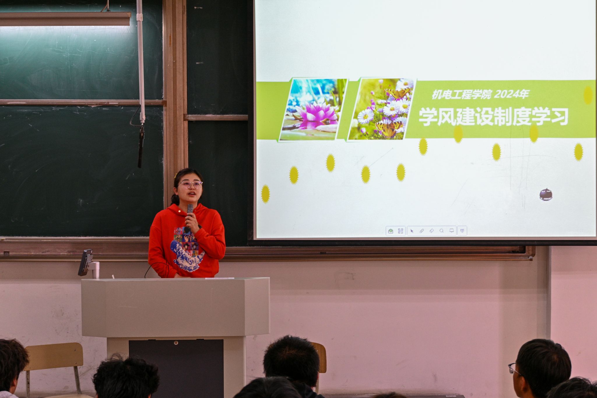 本次见面会以“你好,新同学!——大学生活开启指南”为题。辅导员老师们一一上台,首先对机电新生的到来表示欢迎,从初入大学的注意事项、时间管理与学业规划、获取信息的方式途径等方面向同学们进行了介绍,希望大家更好地适应大学生活,主动作为,通过积极参与校园各项活动,全面提升自身综合素质。此外,就日常行为规范、学习考试纪律等提出了具体要求,希望新生们能够自觉遵守校规校纪,树立优良学风,充分展示大学生的良好精神风貌。接着,辅导员老师们从各自负责的学生专项工作开始,详细解读了学校的规章制度、安全须知以及生活指南,同时介绍了丰富多彩的校园活动,特别强调了学术诚信和个人行为规范,帮助新生们充实校园生活,培养良好的学习和生活习惯,并鼓励同学们积极参加科创、社会实践和校园活动,努力提升自己。见面会的最后,辅导员老师们为新生送上了真挚的寄语,希望新生们能够珍惜在金科的每一天,勇于探索未知,敢于挑战自我,不断追求卓越。