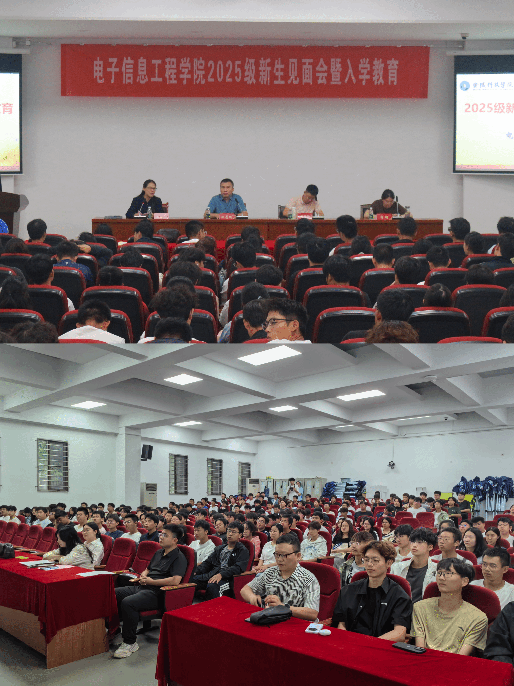 为帮助2025级新生快速融入大学生活,明晰专业发展方向,9月30日上午,电子信息工程学院在大学生活动中心一楼报告厅举行了2025级新生见面会暨入学教育。学院党委书记徐志国、院长胡国兵、党委副书记陈智慧、副院长杨娟、教务办副主任查慧慧、综合办副主任路昭亮、班主任教师代表、全体辅导员及2025级全体统招新生参加了此次活动。