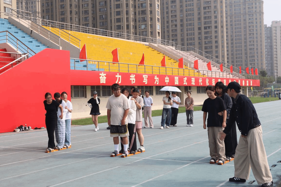 比赛现场氛围热烈而有序,赛道沿线师生驻足观赛,为参赛队伍加油助威。各参赛队伍赛前充分磨合,比赛中严格遵循规则,以高度的默契与协作向终点发起冲击。从起步阶段的节奏校准,到加速过程中的步伐同步,再到全程响亮的团队口号,每一个环节都展现出队员间的紧密配合与互助精神。不同于单人竞技项目,板鞋比赛更考验“1+1+1>3”的团队合力,队员们并肩前行,用整齐的步伐诠释着团结的内涵,用拼搏的姿态展现着商院学子的青春风采。