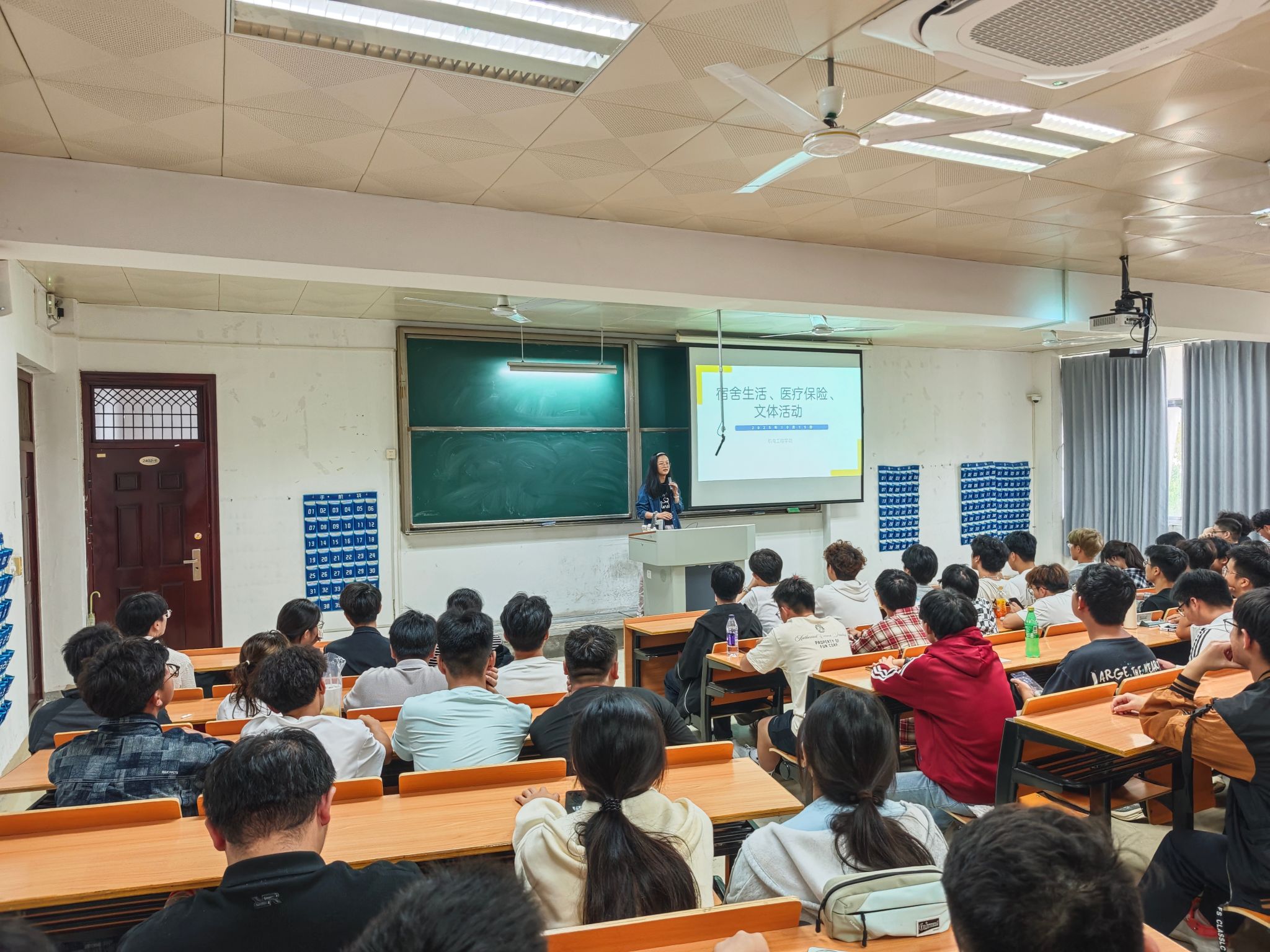 本次见面会以“你好,大学生!——大学生活开启指南”为主题,内容聚焦新生需求,兼具实用性与引导性。活动伊始,辅导员老师们依次登台,首先向迈入人生新阶段的机电新生表示诚挚欢迎。随后,辅导员们结合学生管理经验,从初入大学的适应性要点切入,分别从学风建设、心理健康、安全教育、科创活动、职业生涯规划、党团建设、宿舍管理、评奖评优等方面展开,重点讲解了时间管理技巧与学业规划方法,清晰梳理了校院官网、教务系统、班级社群等信息获取渠道,助力新生精准把握学业、评奖、就业等关键资讯。