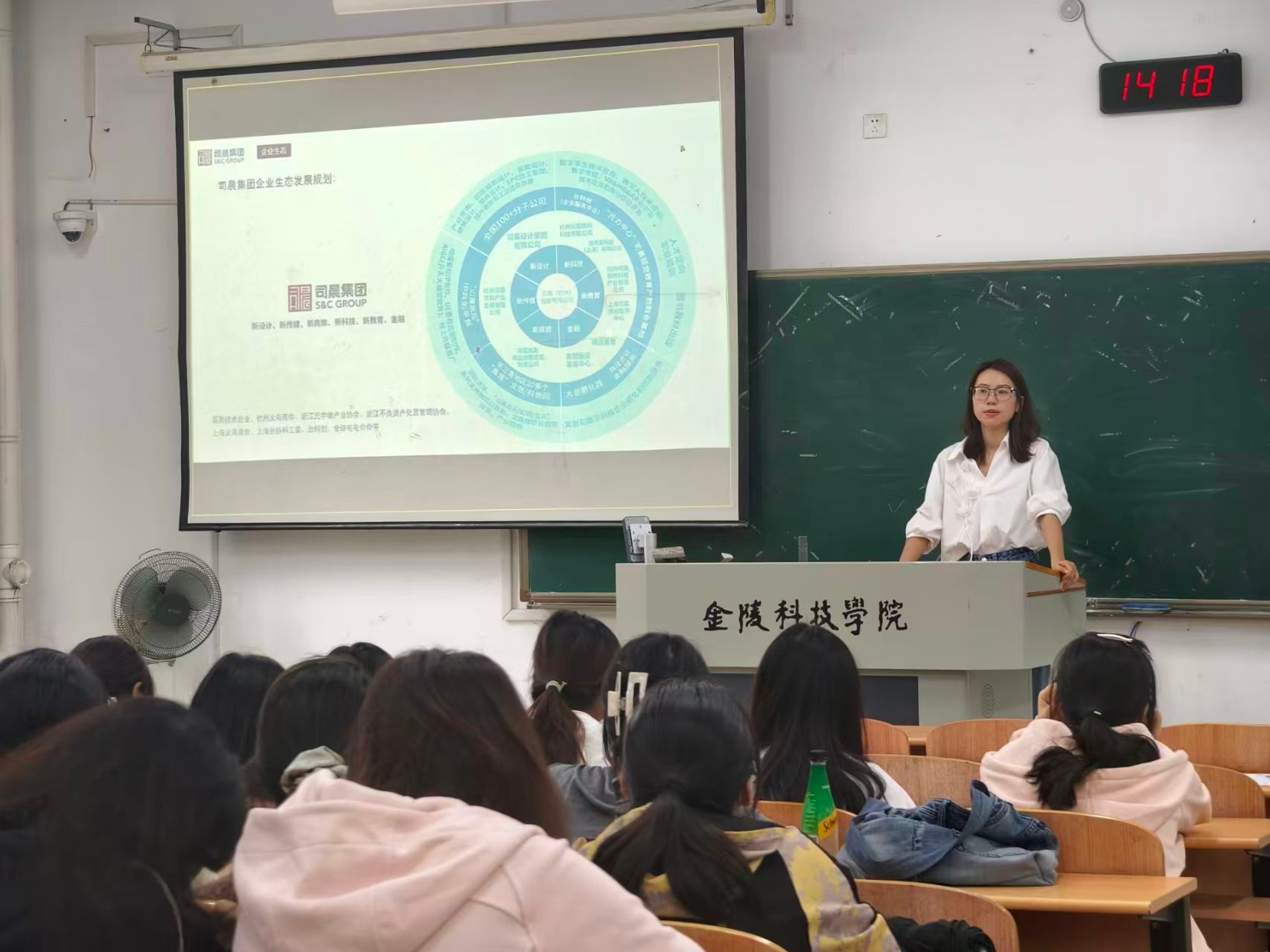 洽谈结束后,专场招聘会在5102教室正式开启。南京司晨视创科技有限公司人事经理曹月面向2026届环艺系、产品系毕业生,通过案例展示与现场讲解,进一步细化介绍企业项目模式、岗位工作内容及薪酬福利体系。毕业生们携带精心准备的个人简历与作品集,主动与企业招聘负责人交流,围绕岗位专业匹配度、职业晋升通道、实习实践安排等问题展开咨询。