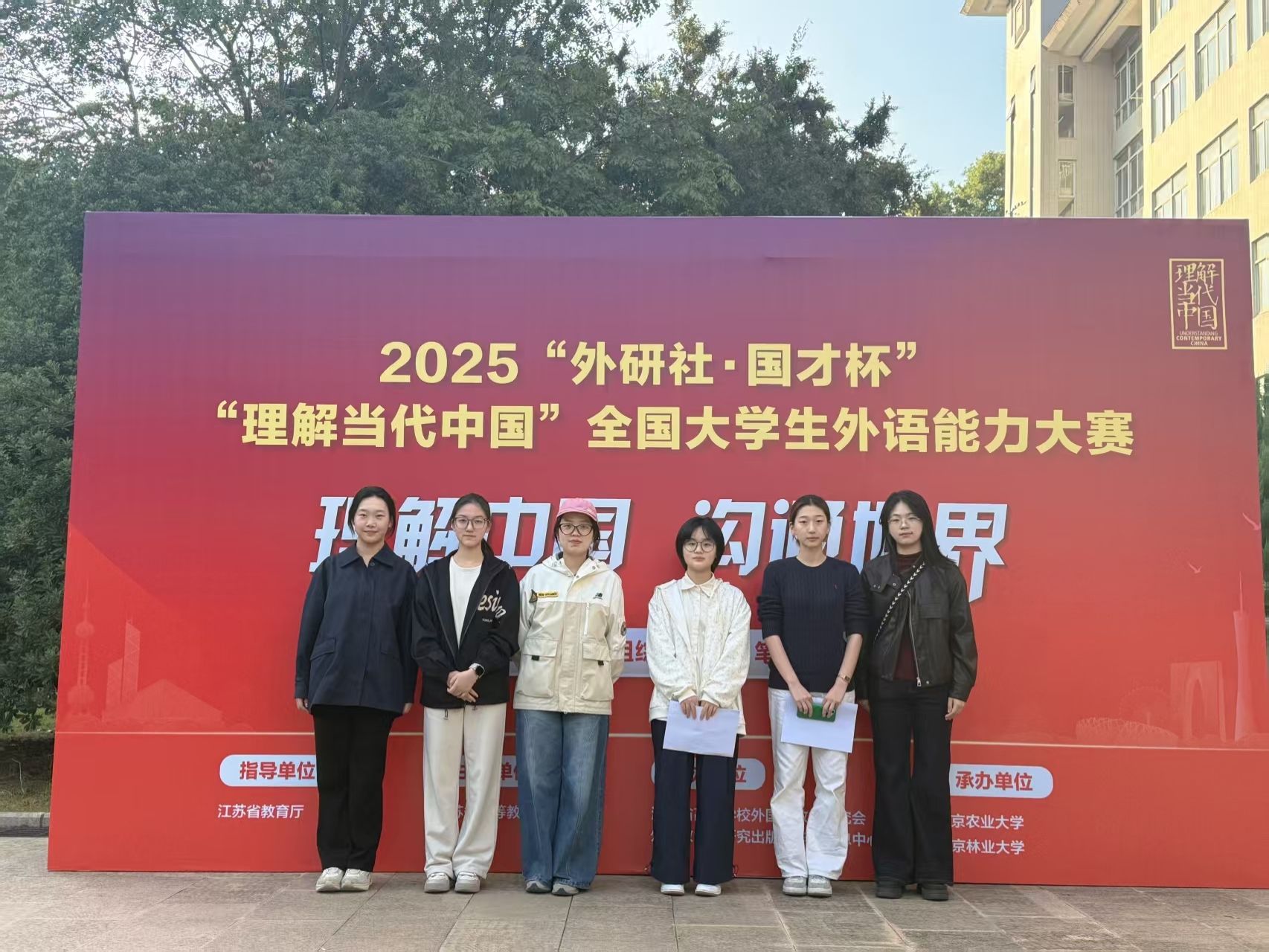10月25日,2025年“外研社•国才杯”“理解当代中国”全国大学生外语能力大赛英语组综合能力比赛江苏省赛在南京农业大学举行。在这场汇聚全省精英的激烈角逐中,外国语学院23级英语专业曹舒涵荣获二等奖、人文学院24级汉语国际教育专业孙雪漫、商学院25级会计学专业陈彦如荣获三等奖。值得一提的是,本次获奖选手分布在不同年级、不同学院和专业,这一成绩不仅彰显了我校学子扎实的外语功底与跨学科素养,更体现了外国语学院“以赛促学、以赛促教”的育人理念在多元专业领域的成功实践。