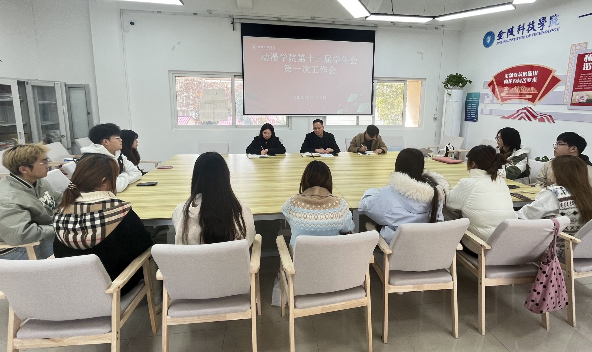 为明确新一届学生会工作方向,凝聚骨干力量,12月1日,动漫学院第十三届学生会第一次工作会议在南区01栋一站式学生社区召开。学院党总支书记葛维东,辅导员聂钰石、殷子妍,学院第十三届学生会全体骨干成员参加会议。