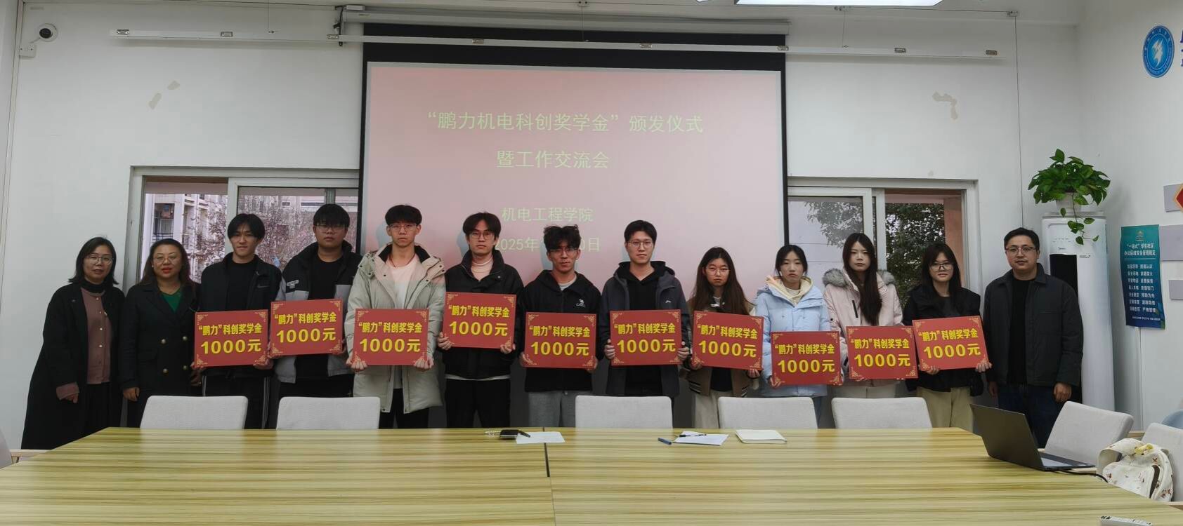 为深化校企协同育人,激励科创优秀学子,近日,机电工程学院在一站式社区举办“鹏力机电”科创奖学金颁奖仪式暨工作座谈会。该奖学金由南京鹏力机电科技有限公司捐赠设立,奖励学院2025年度科创成绩突出的“十佳”科创之星。院党委副书记张蓉、学工办副主任李梅、辅导员杜雨辰及全体获奖学生参加活动,活动由李梅主持。