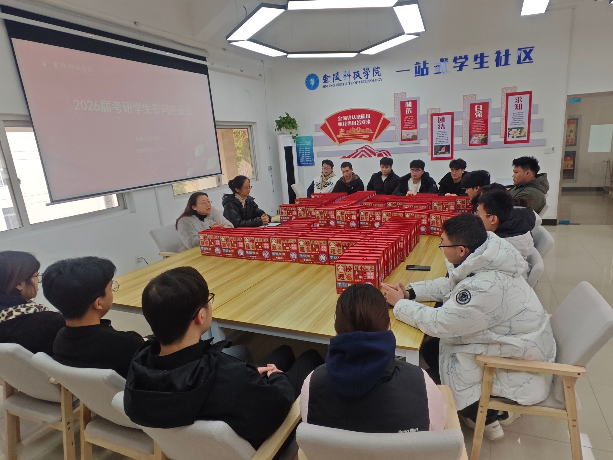 12月17日,机电工程学院在南区01栋一站式社区举办了2026届考研学生慰问座谈会,通过面对面交流传递关怀、缓解压力、提供指导,助力学子们以更佳状态冲刺备考。学院党委副书记张蓉、毕业班辅导员黄凝宁以及备战考研的学生代表们参加了此次活动。