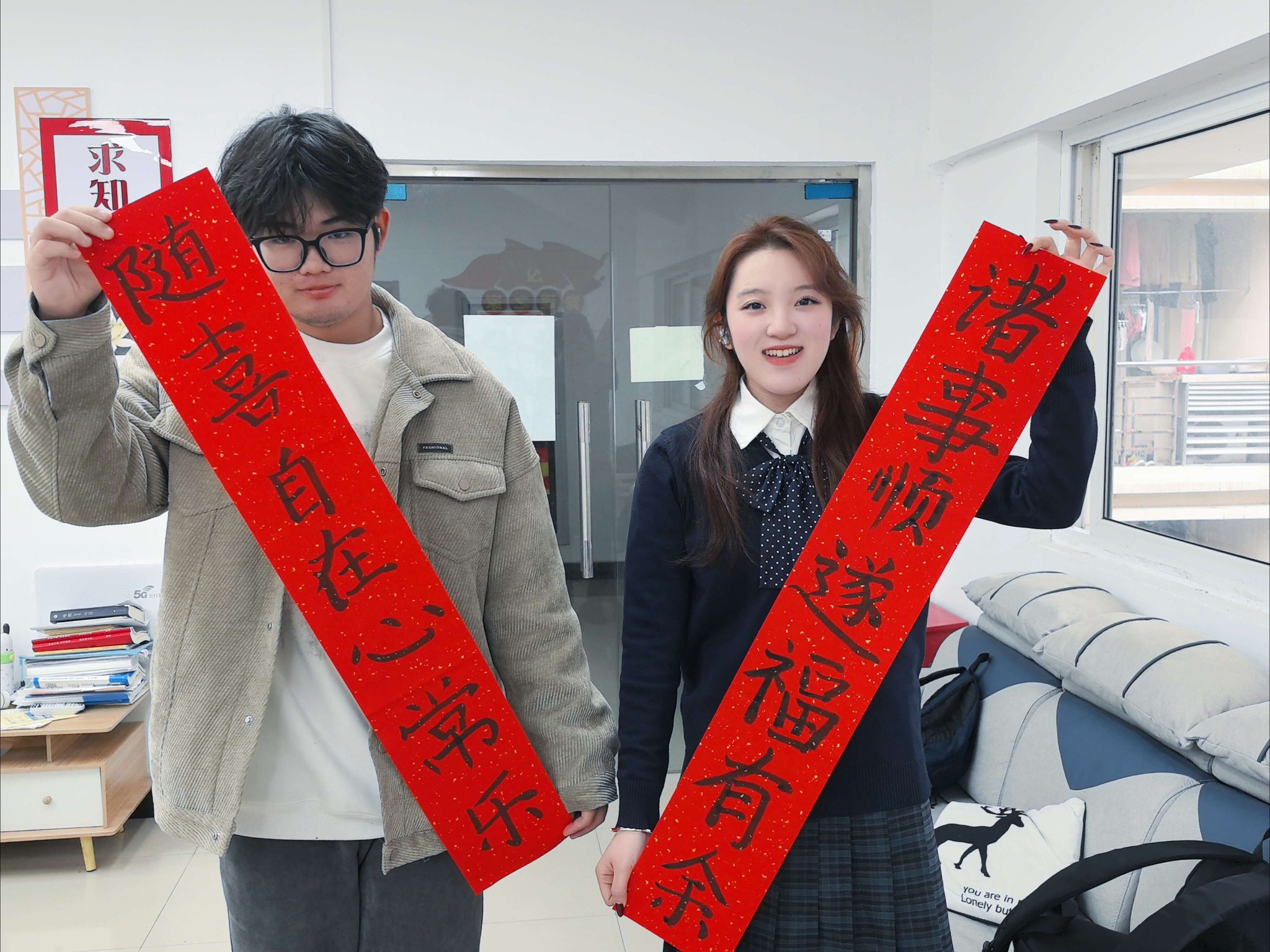 岁末将至,年味渐浓。为传承弘扬中华优秀传统文化,丰富学生课余生活,营造温馨和谐的宿舍文化氛围,增添浓厚新年气息,有效缓解学生期末备考压力,12月25日,材料工程学院在一站式学生社区开展了“翰墨暖社区,笔墨润心田”主题写对联活动。