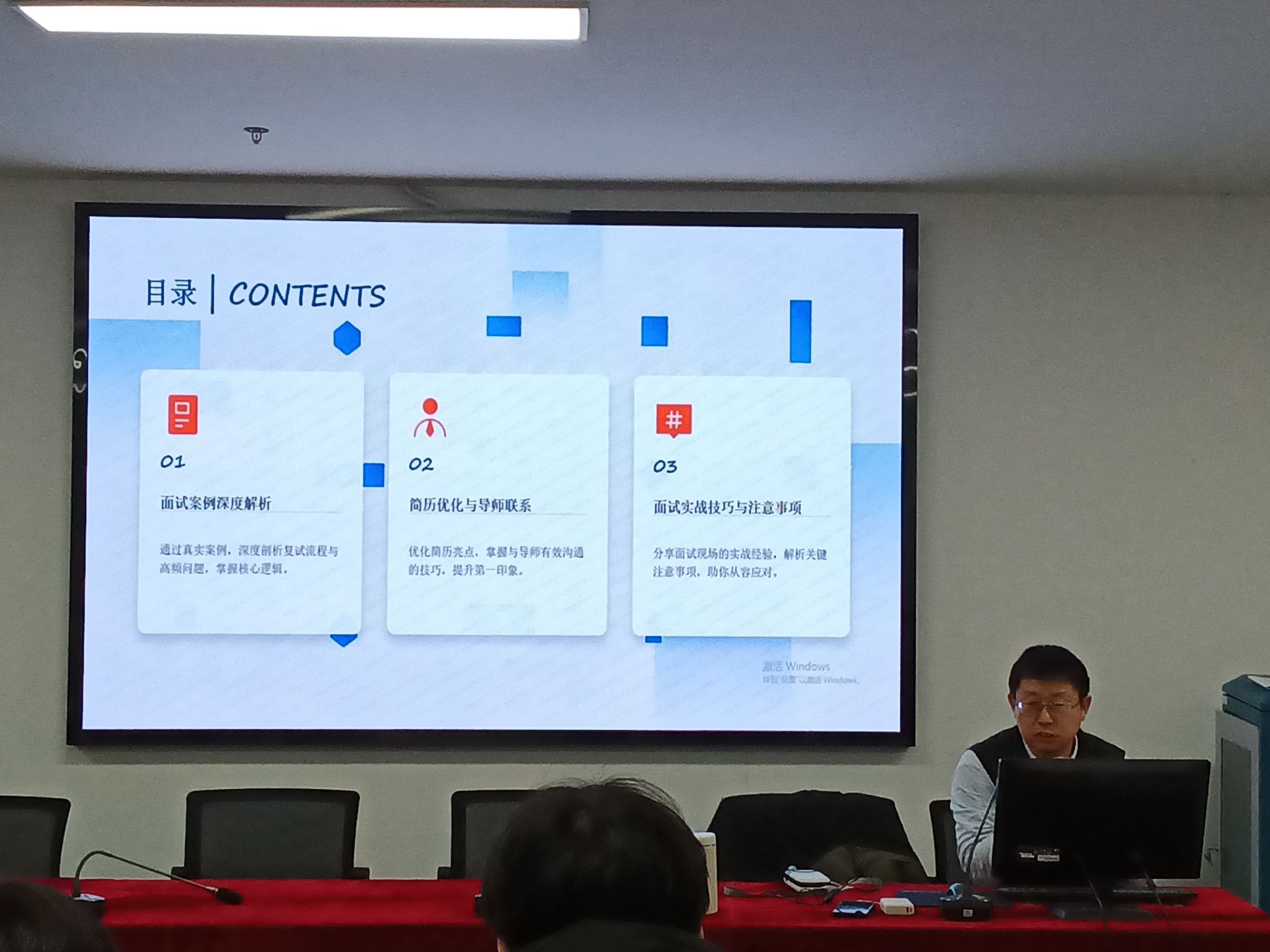 交流会上,胡国兵结合多年研究生培养经验并对往届学生进行充分调研后,有针对性地重点解析了复试的核心考察维度。他建议考生从专业知识体系梳理、科研项目复盘、英语口语强化三个维度进行系统准备,特别提醒学生在面试中要展现清晰的科研思维和专业发展潜力,精心准备面试简历,从容应对面试现场,争取马到成功、一战告捷。陈智慧就心理调适与应试礼仪进行现场解析,她鼓励同学们要坚定信心,以积极的心态投入到复试准备中,合理规划时间,充分利用好此次交流会上获得的经验,努力实现自己的考研目标。会议最后,同学们逐一提出了自己在复试、调剂准备过程中的疑惑,参会老师也详细解答了同学们的疑问。