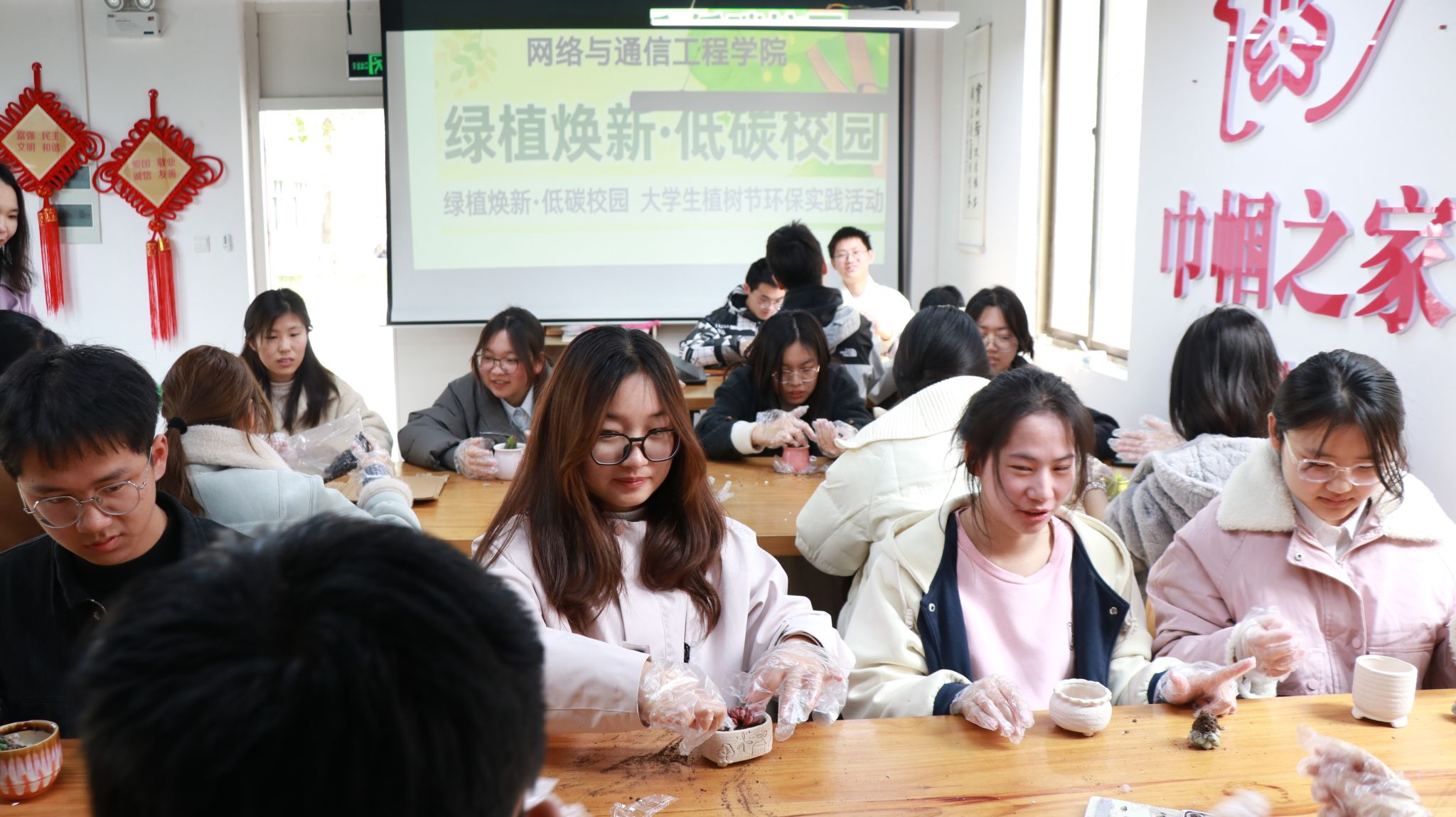 为迎接第46个植树节,厚植大学生绿色环保理念,引导青年学子践行低碳生活方式,3月11日下午,网络与通信工程学院于北04一站式社区开展“绿植焕新·低碳校园”多肉盆栽DIY活动,让同学们在手工创作中邂逅自然之美,以实际行动助力绿色校园建设。