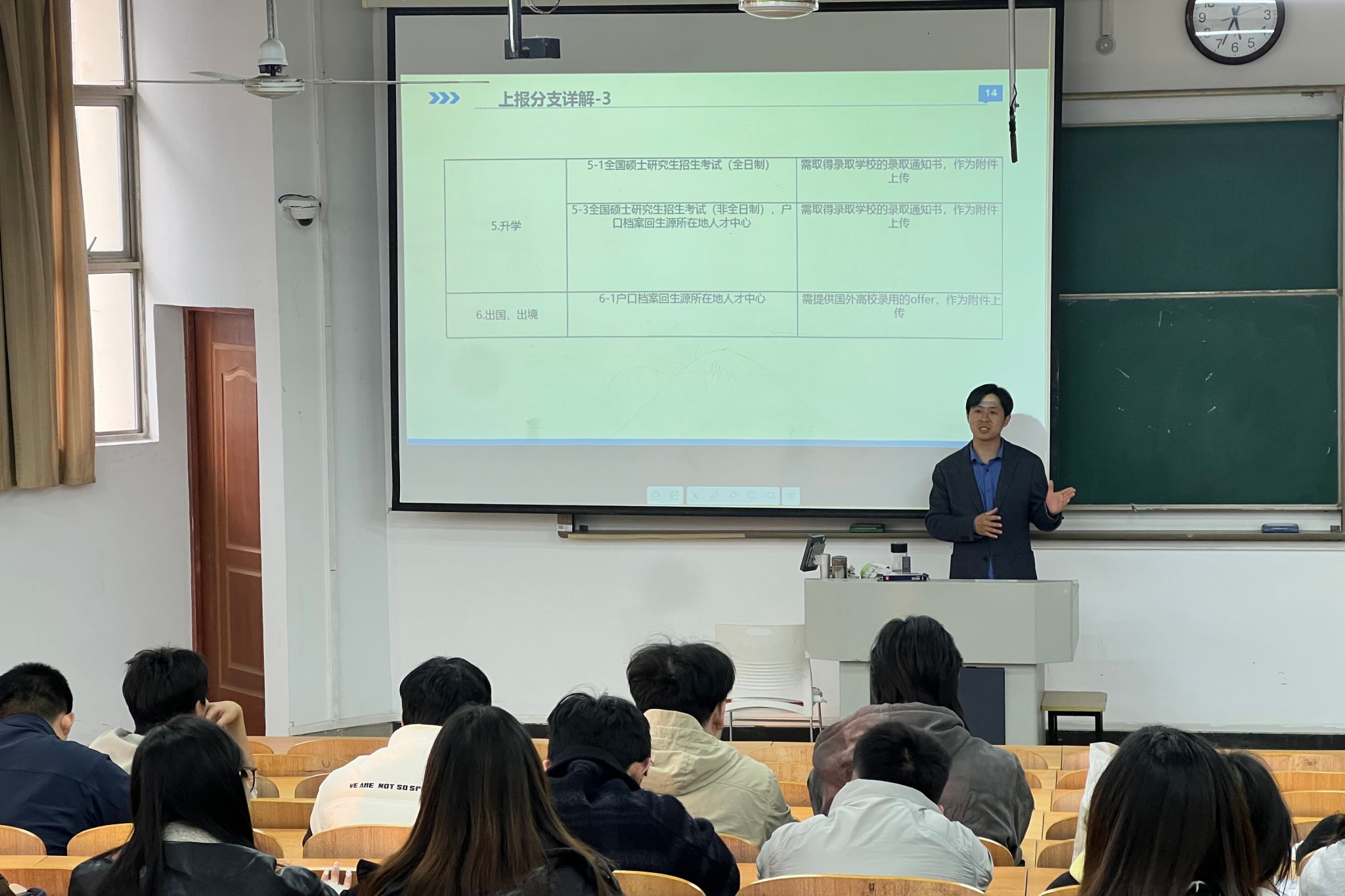 会上,聂老师围绕毕业生核心事项展开细致讲解。针对求职就业,重点指导简历和专业作品集制作,叮嘱同学们打磨作品、突出专业优势,提升求职竞争力;同时明确就业信息上报的填报规范与注意事项,提醒大家及时准确上报相关信息。针对毕业事宜,聂老师带领同学们梳理毕业资格自查补修事项,提醒大家再次核对学分、课程成绩,及时完成补修补考,并逐一说明近期各项毕业工作安排,明晰各项流程和时间节点。