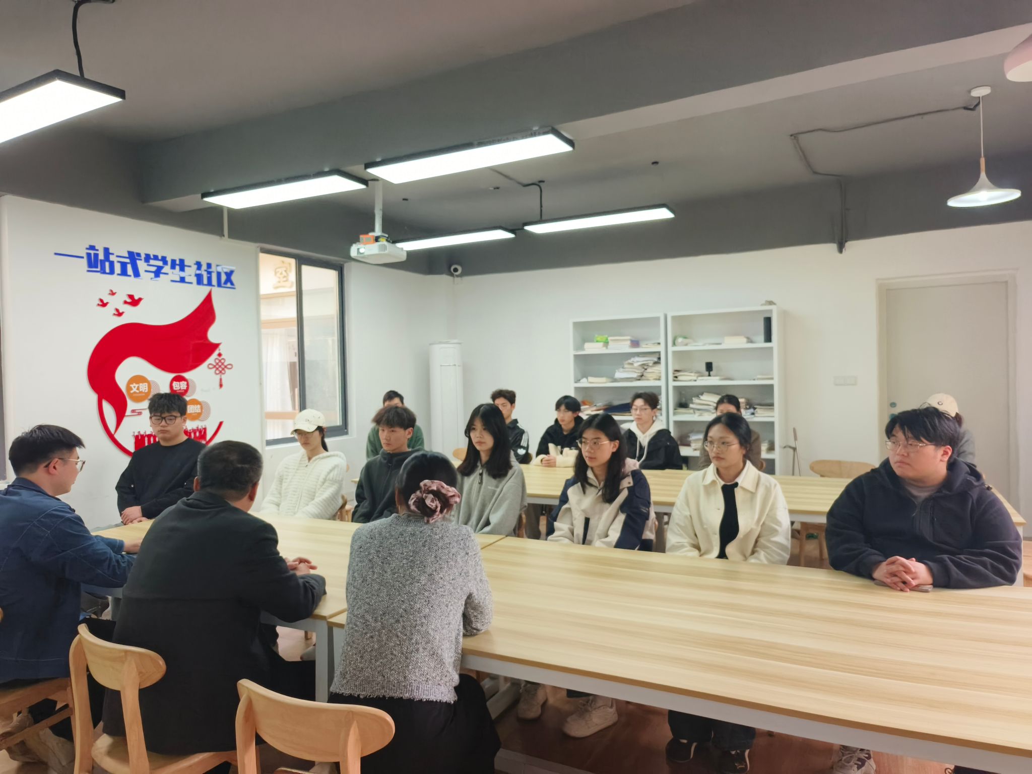 为强化校园安全管理,落实班级安全工作职责,4月1日下午,电子信息工程学院在北区02栋“一站式”学生社区召开安全教育座谈会,学院党委书记徐志国、副书记陈智慧、辅导员征文维以及各班安全委员参加会议。会议由学院党委副书记陈智慧主持。