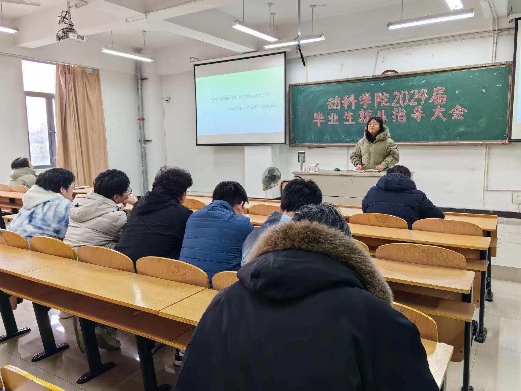 为帮助2024届毕业生认清就业形势,明确就业方向,动科学院于12月26日下午2点在图教楼B305召开了2024届毕业生就业指导大会。动科学院党委副书记黄淑婧、2024届毕业生辅导员魏鹏以及2024届全体毕业生参加了本次大会。