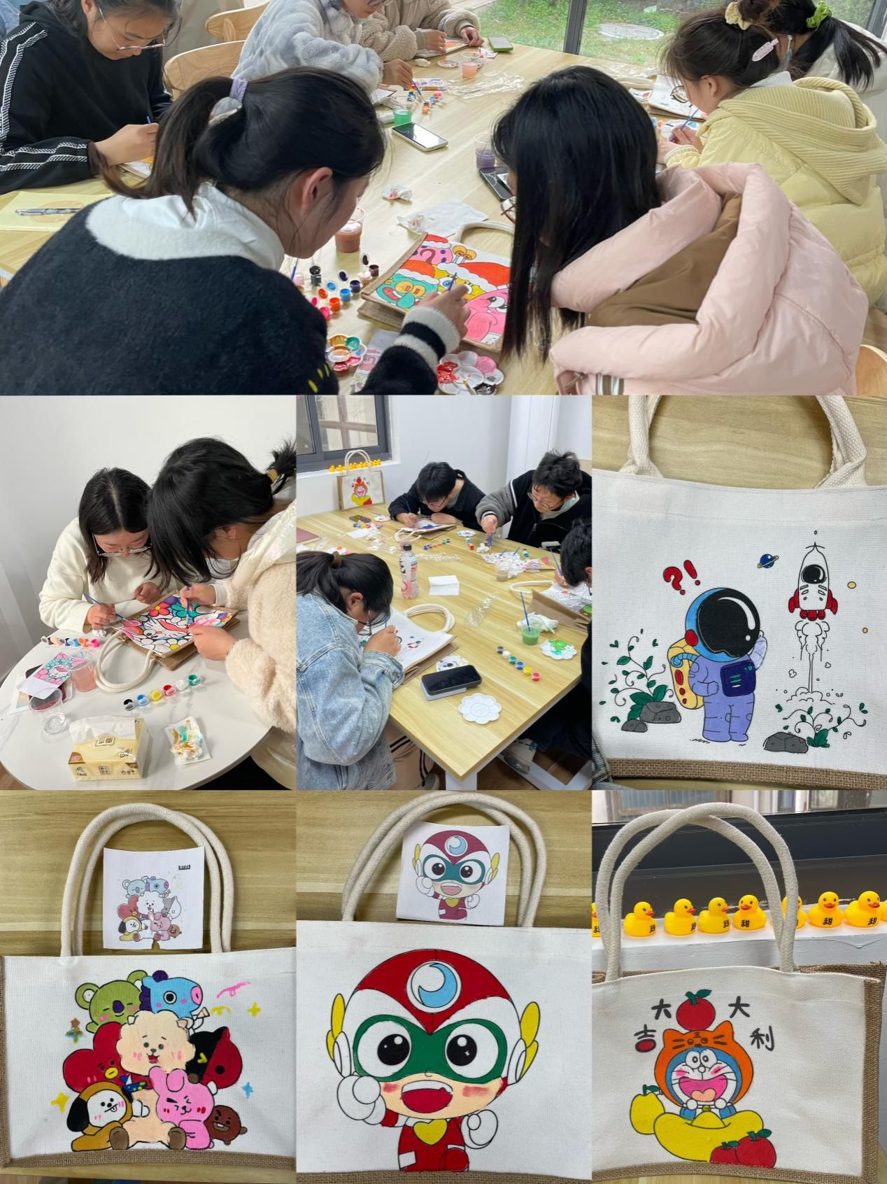 活动现场,同学们手持画笔,发挥想象,在帆布包上展现自己最生动的笔触,随着帆布包上色彩的充盈,现场气氛逐渐升温,无需技巧,不限工具,通过色彩与情感的碰撞,展现了同学们的内心世界,让作品成为了生活的点缀和情感的寄托,活动最后,同学们高举作品合影留念,记录下美好时刻。