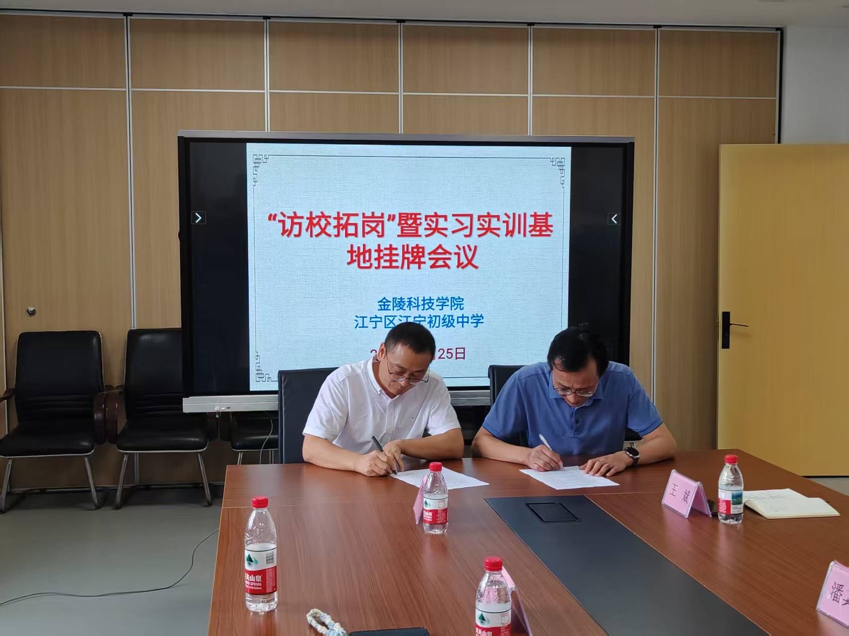 近日,我校理学院党总支书记雍海龙,副院长魏广华、刘平等一行赴南京市江宁区江宁初级中学举行实习实训基地签约暨揭牌仪式。江宁初级中学校长朱吉兵、副校长刘仲平等热情接待。