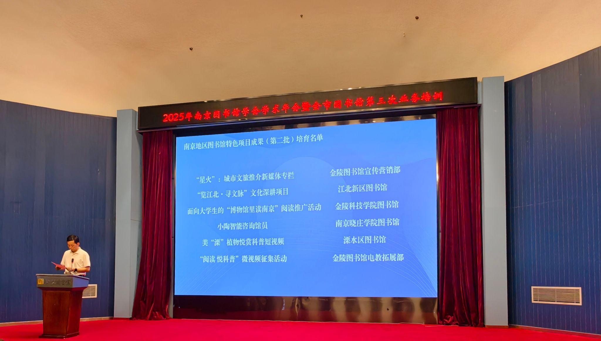 开幕式上,南京图书馆学会副理事长、我校图书馆馆长许晨受学会委托,宣读了南京地区图书馆特色项目成果(第二批)培育名单,该名单共包括金陵图书馆、江北新区图书馆等报送的6项成果。我校图书馆报送的“面向大学生的‘博物馆里读南京’阅读推广活动”成功入选。