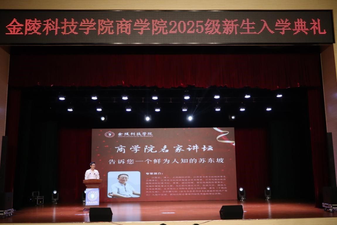 9月28日,商学院在学校大学生活动中心举办传统文化进校园专题讲座暨客座教授聘任仪式。江苏省书香全民阅读基金会理事长汪维宏,商学院党委书记徐立岗、院长刘磊、副书记孙亮、教师代表、全体辅导员及2025级全体新生参加活动。