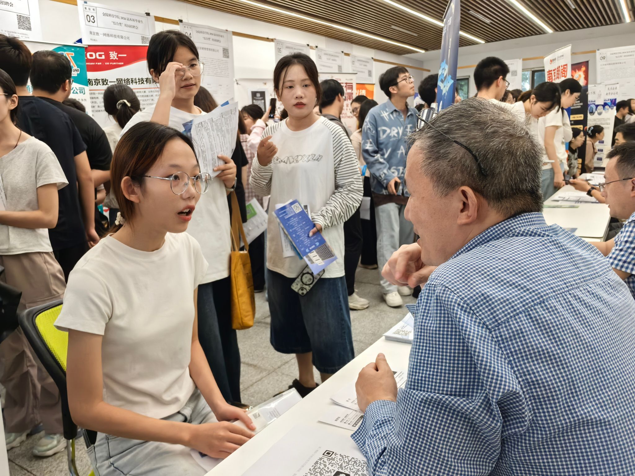 9月24日下午,我校举办了金陵科技学院2026届本科毕业生首场“综合类”校园招聘会。邀请了豪迈集团股份有限公司、雨润控股集团有限公司、江苏亚威机床股份有限公司、江苏博思通新材料有限公司、南京保伦电子科技有限公司、无锡奥特维科技股份有限公司等54家优质企业入驻参会,涵盖智能制造、生物医药、新能源、金融等多个行业,提供就业岗位1500余个,毕业生共投递简历1300余份。