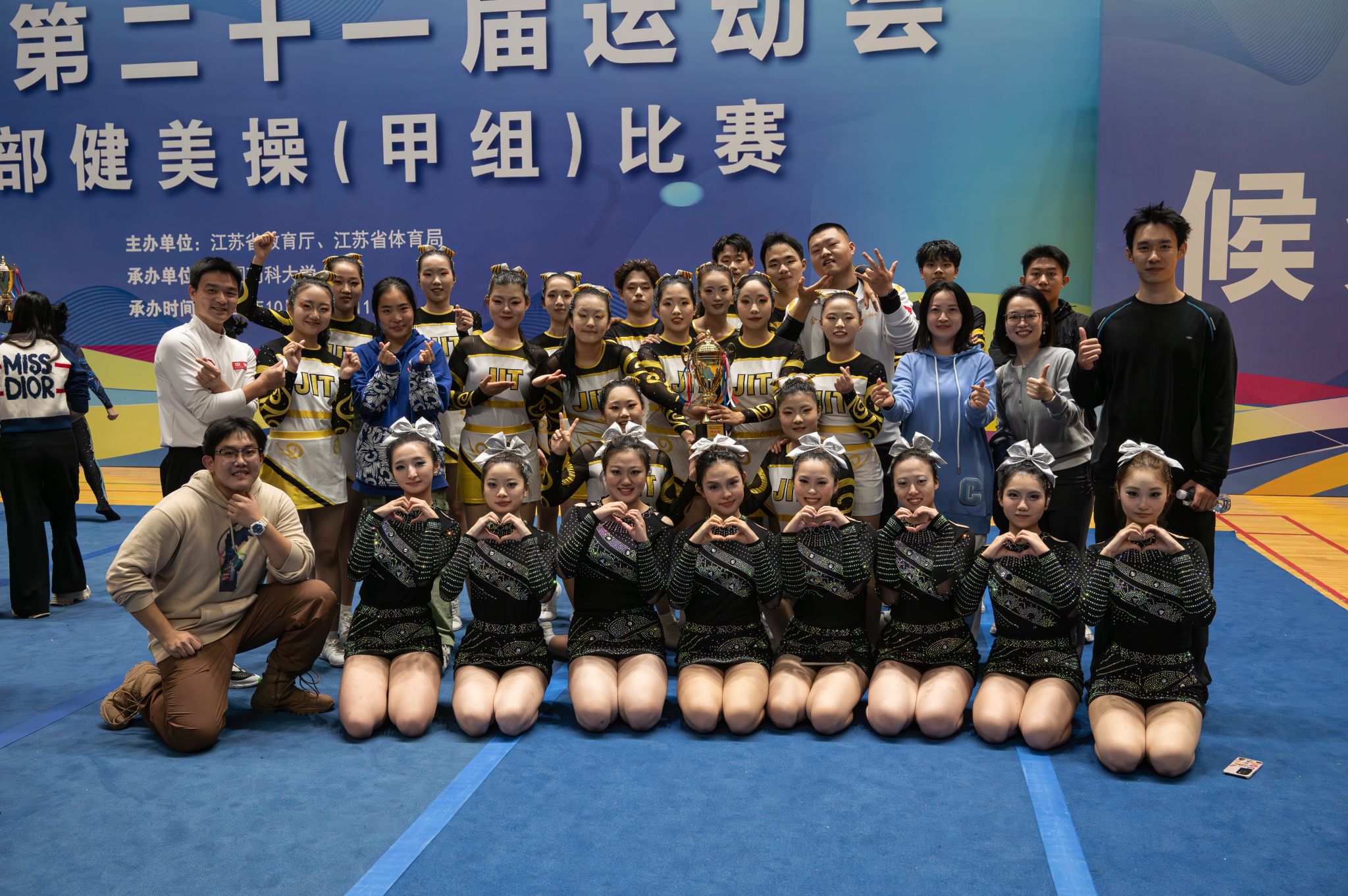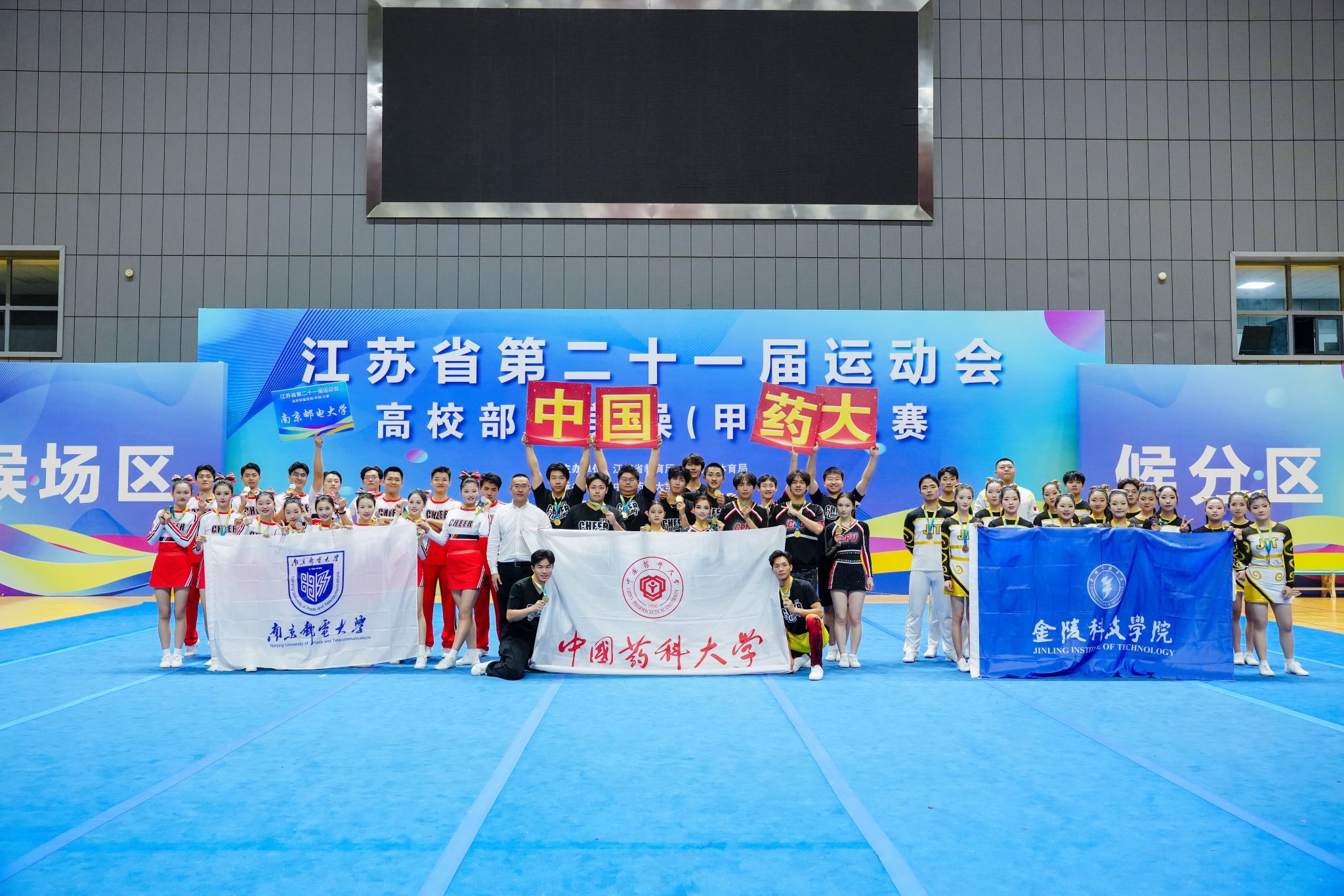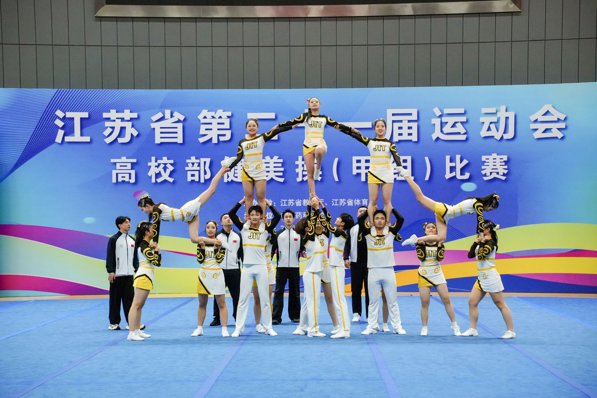 10月30日-11月2日,江苏省第二十一届运动会高校部健美操(甲组)比赛在南京市中国药科大学隆重举行。我校派出了由商学院、人文学院、网通学院、外院、艺术学院、材料工程学院、国教院、软件学院、智控学院等10个学院共26学生组成的啦啦操队参加了此次比赛,并获得了甲B组花球啦啦操第十二名和技巧啦啦操第三名的好成绩,这也是我校首次在省运会该项赛事中站上领奖台。