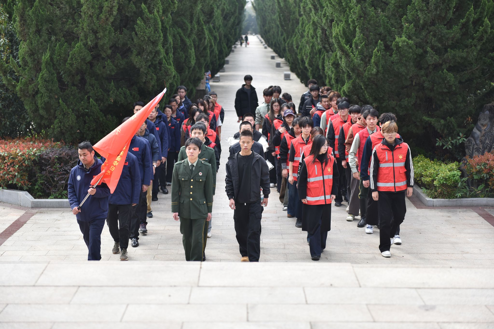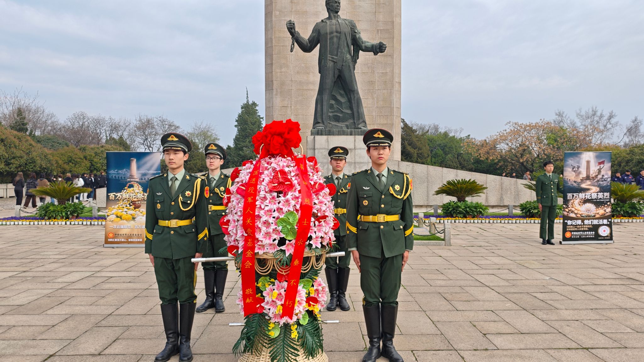 近日,退役军人事务部、中央网信办、共青团中央、全国少工委联合印发《关于开展“追寻·2026·清明祭英烈”活动的通知》,部署开展系列纪念祭扫活动,旨在传承红色基因、赓续红色血脉,引导全社会崇尚英雄、缅怀先烈、争做先锋。为深入贯彻落实通知要求,3月27日,我校金兵社牵头组织部分退役大学生士兵及学校国旗护卫队共36名学子,赴雨花台烈士陵园参加由南京市退役军人事务系统开展的“2026年追寻·清明祭英烈”主题祭扫活动,以青春之名缅怀革命先烈,以实际行动践行初心使命。