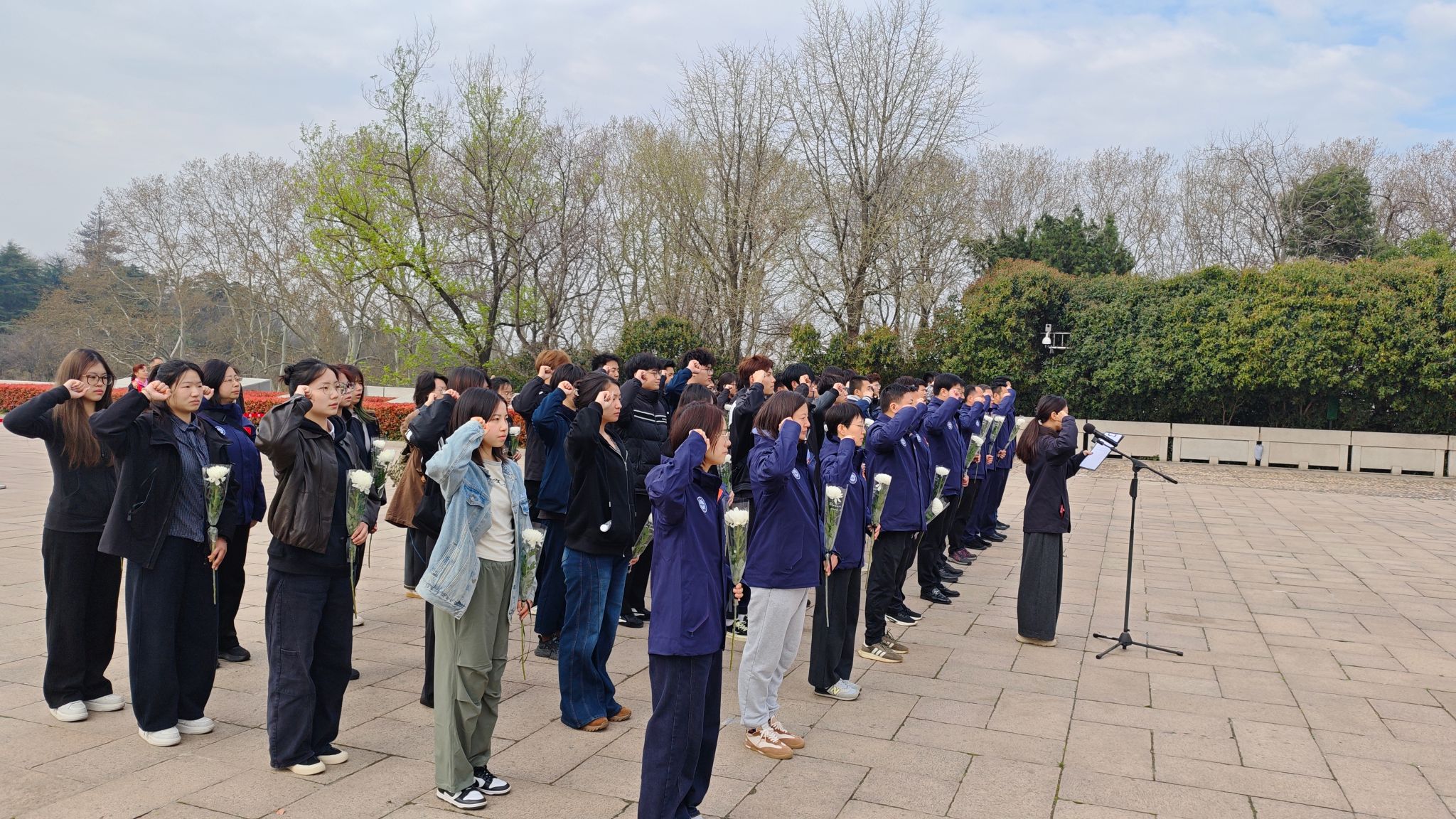 苍松翠柏守英烈,白花祭奠悼忠魂。在雨花台烈士陵园烈士纪念碑前,同学们整齐列队肃立默哀,向为民族独立、人民解放英勇献身的革命先烈致以崇高敬意与深切缅怀。默哀毕,大家依次敬献鲜花、缓步绕行瞻仰纪念碑,在庄重肃穆的氛围中接受红色精神洗礼,深刻感悟雨花英烈精神的信仰力量,切实将通知中“缅怀先烈、传承精神”的要求落到实处。