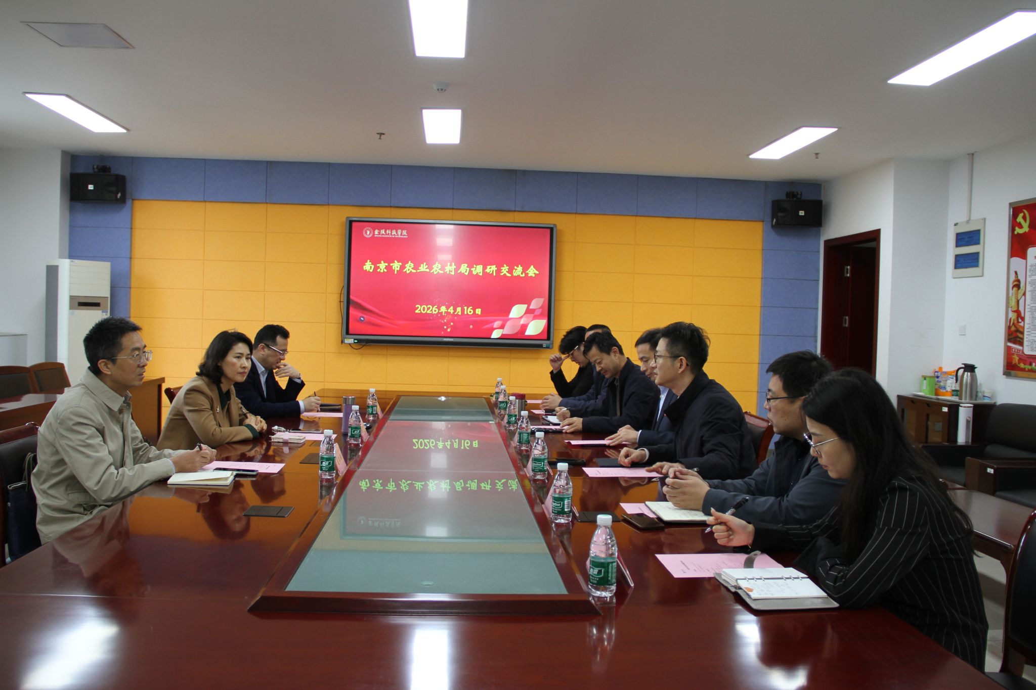 4月16日上午,南京市农业农村局副局长郭双庆一行来我校商学院调研交流,市场信息处、农业信息中心相关负责人陪同调研。我校教务处副处长刘旭明,商学院党委书记徐立岗、院长刘磊及相关人员参加座谈。