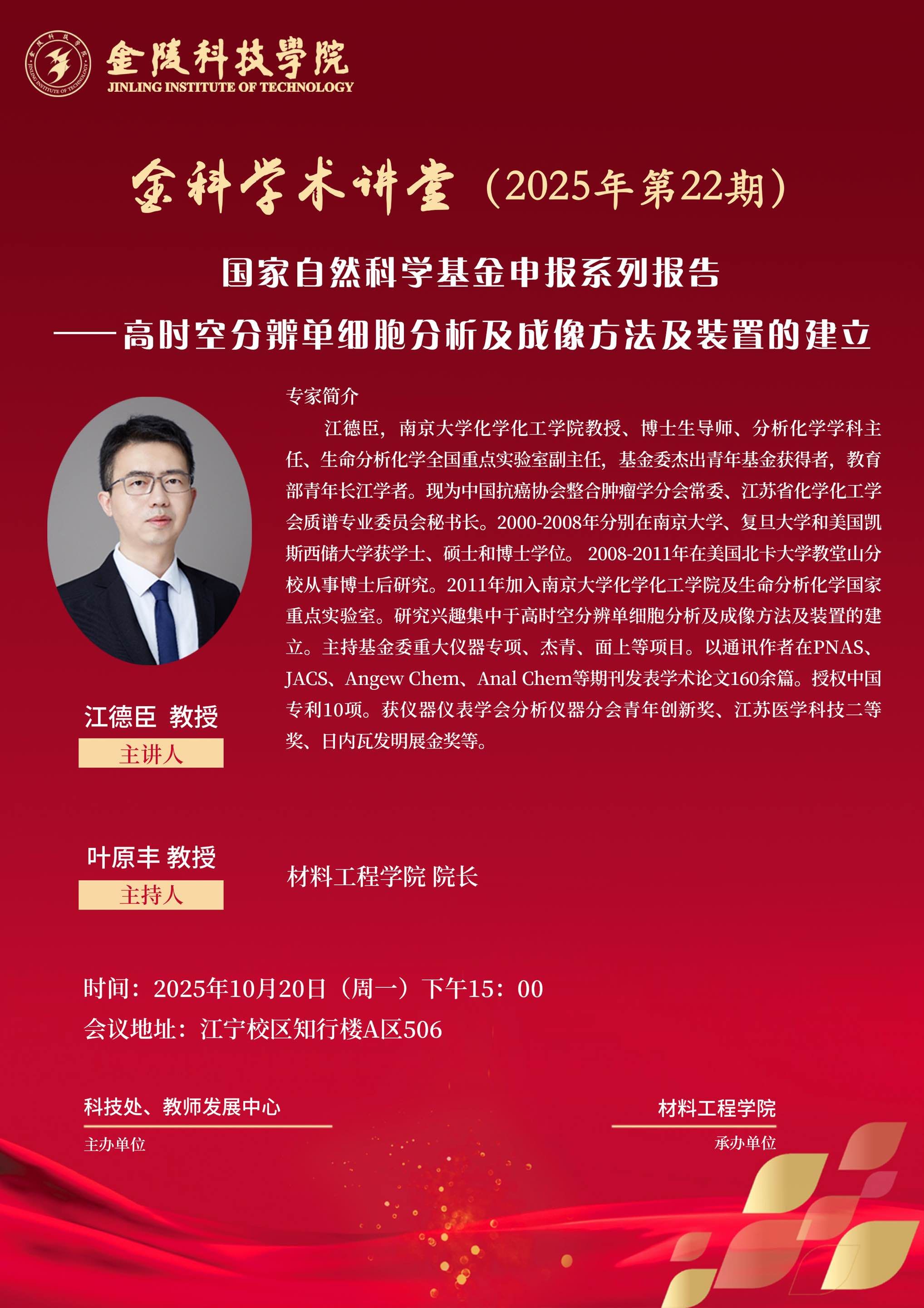 关于举办线下“金科学术讲堂:国家自然科学基金申报系列报告——高时空分辨单细胞分析及成像方法及装置的建立”学术报告的通知