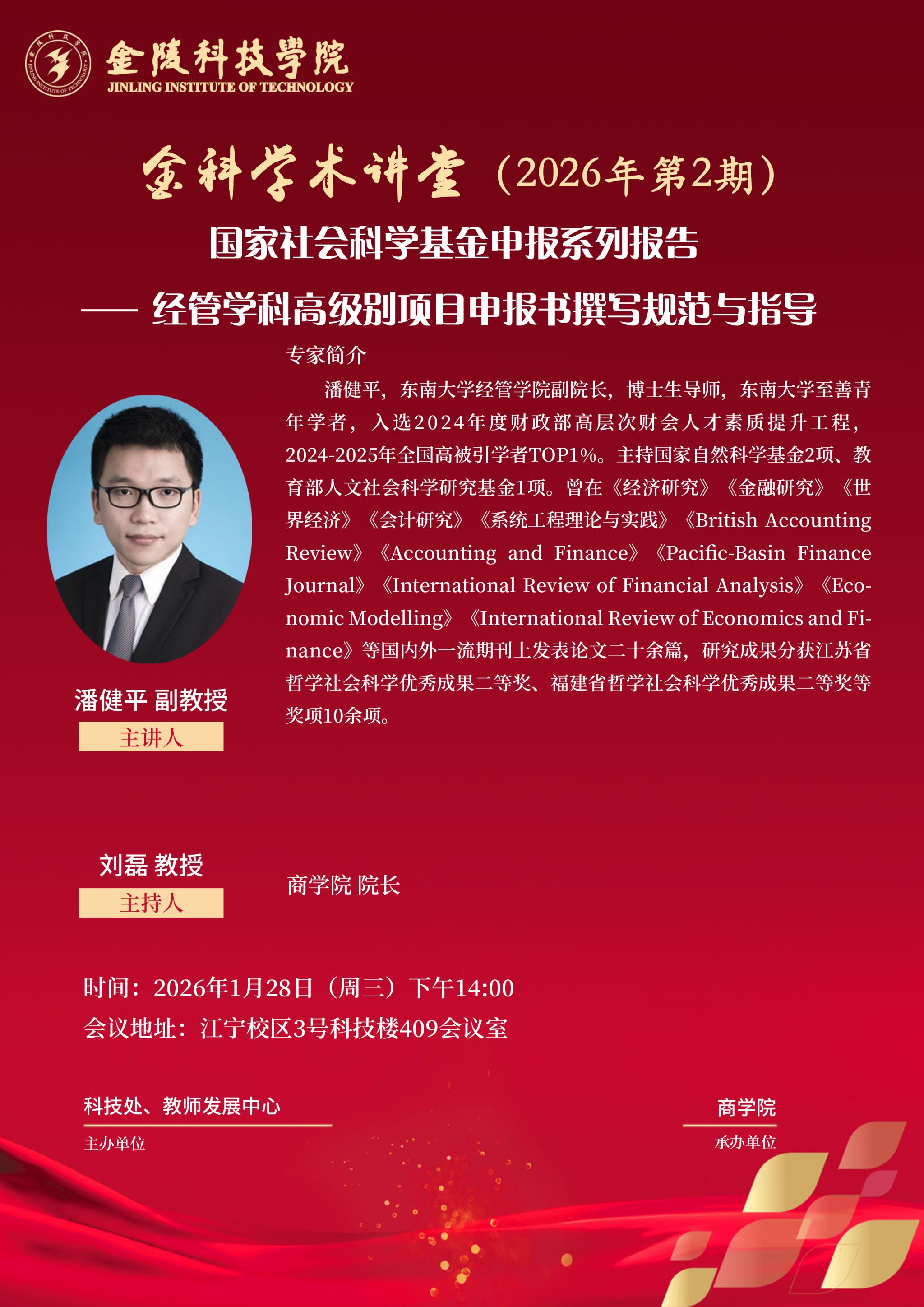 关于举办线下“金科学术讲堂:国家社会科学基金申报系列报告——经管学科高级别项目申报书撰写规范与指导”学术报告的通知